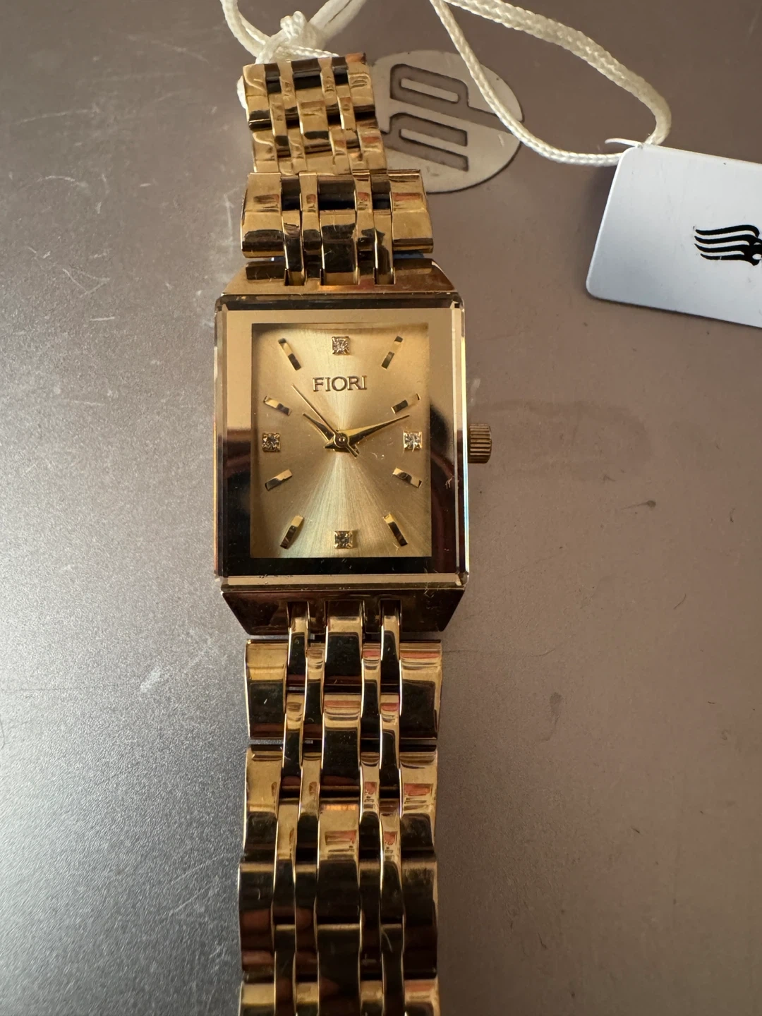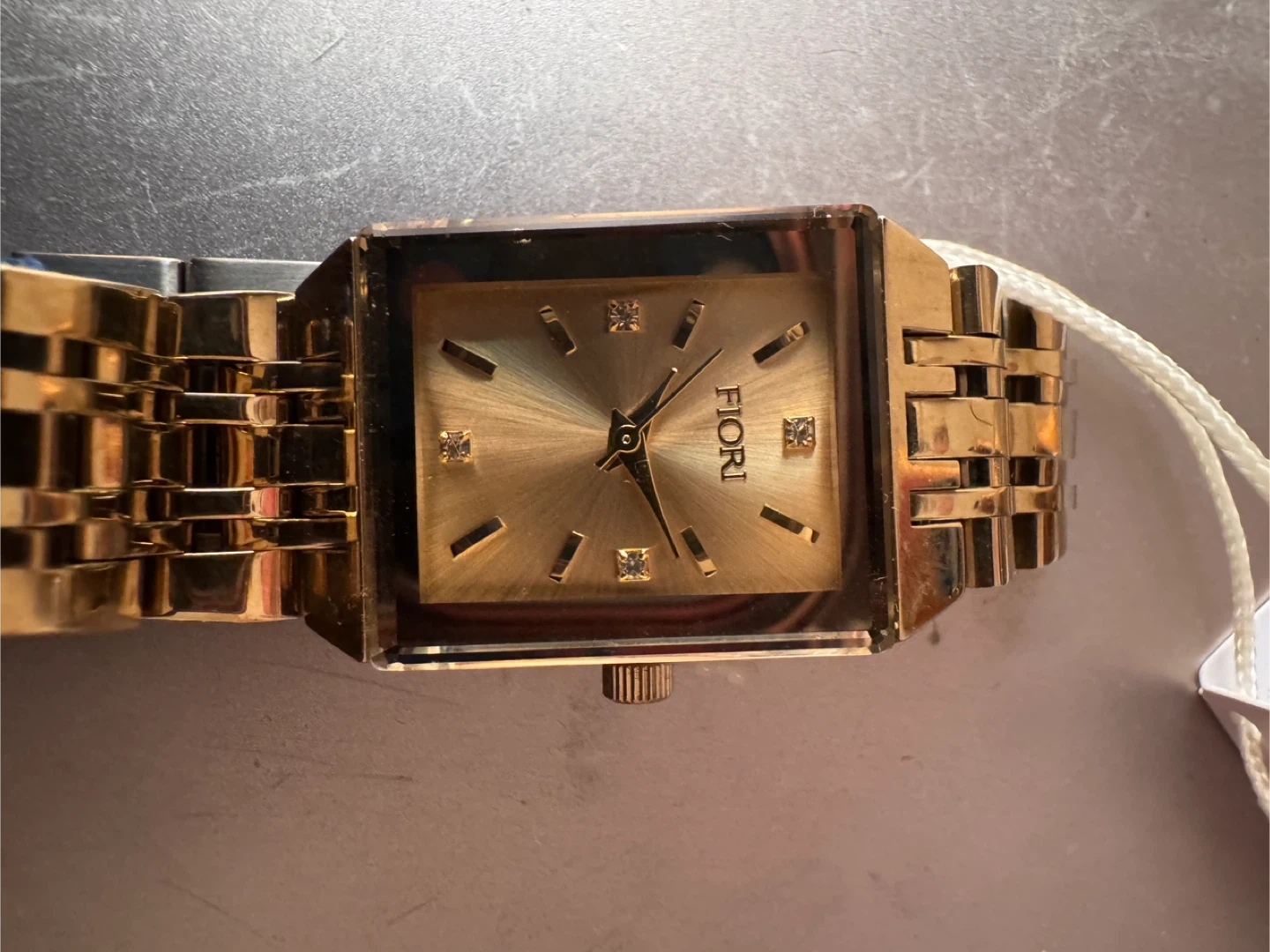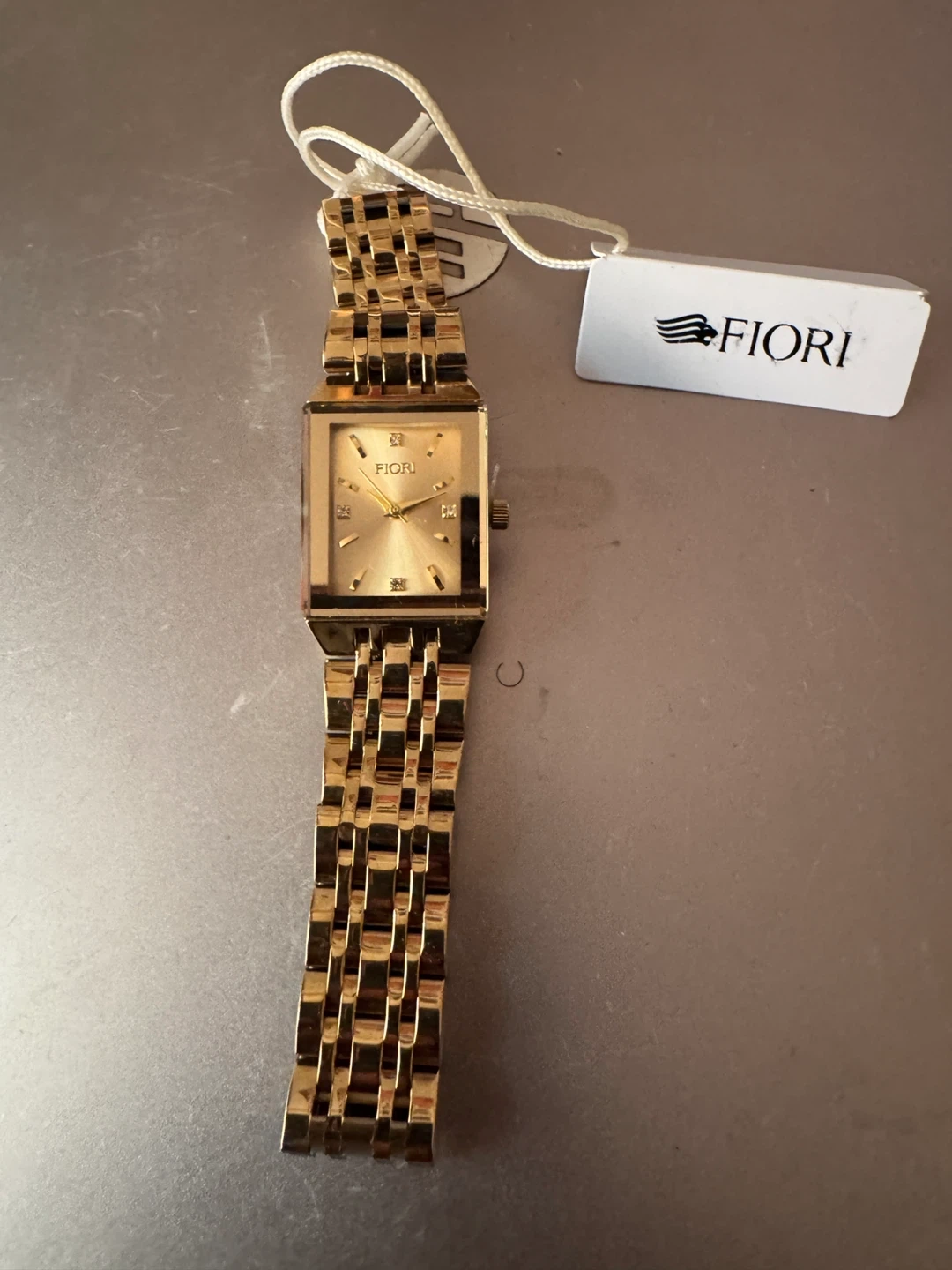 This is a Brand New classic Fiori women's watch with a gold-tone finish. It features a rectangular face and a durable stainless steel band. The watch is water-resistant up to 3 ATM. Message me for More Details!