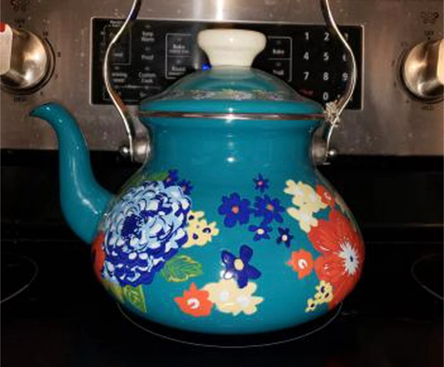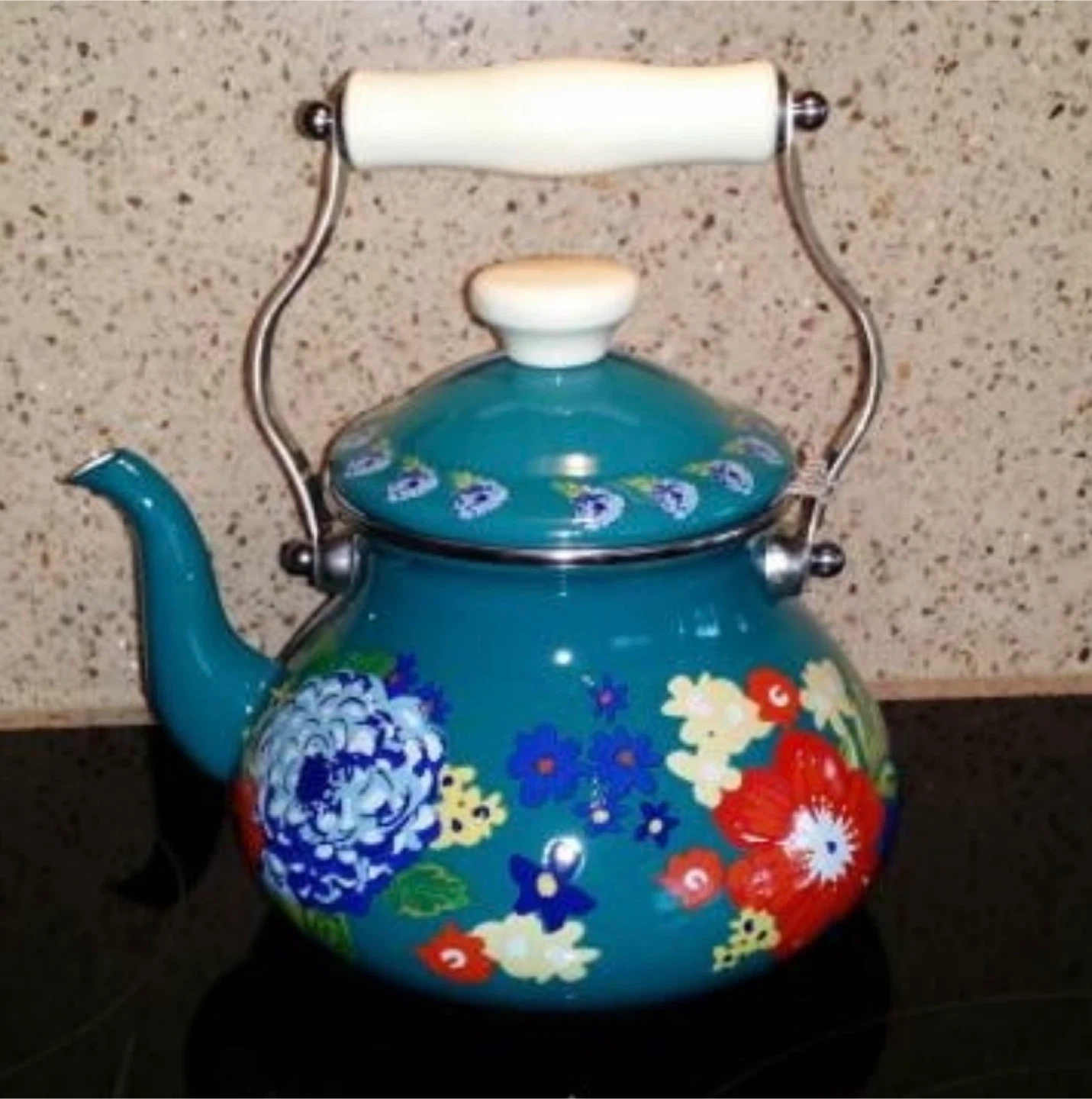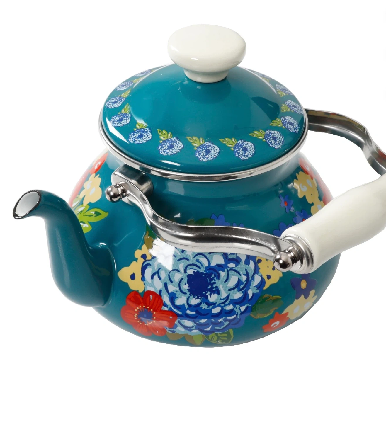 The Pioneer Woman Enamel Kettle Teal Floral 2 Quart