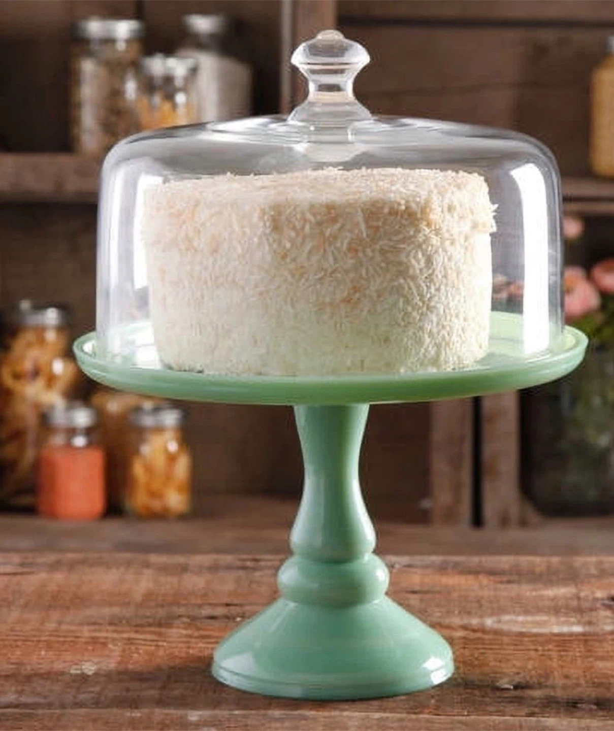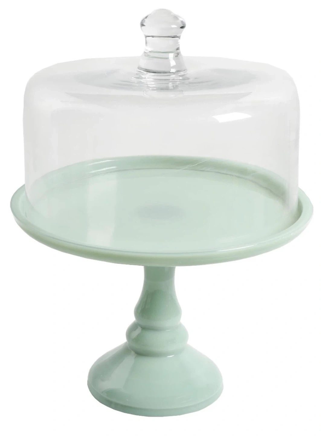 Jade Green Cake Stand with Glass Dome Pioneer Woman