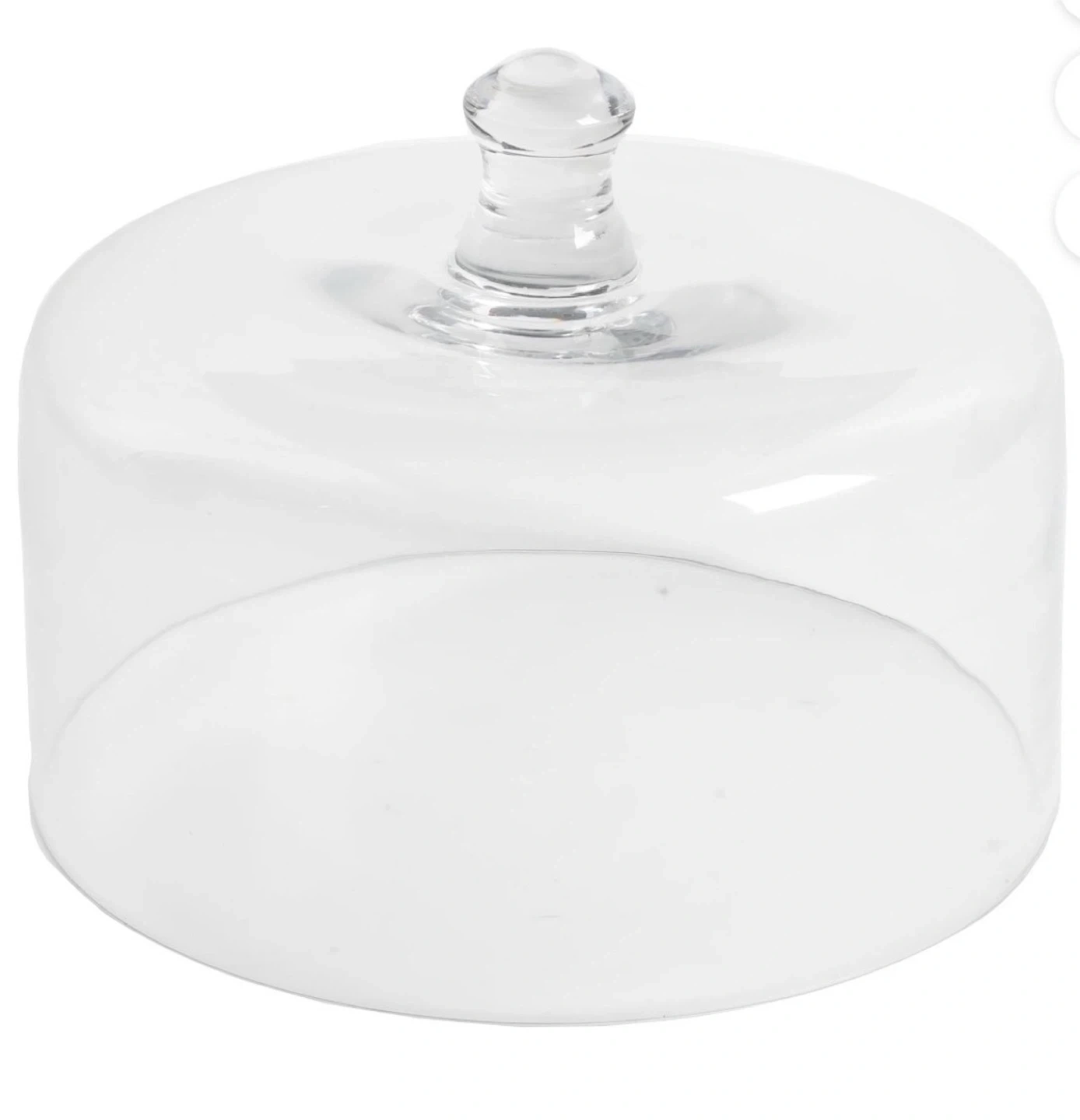 Jade green cake stand with a clear glass dome cover. It's perfect for displaying cakes and pastries. Dome dimensions are 9" diameter and 8" height.
