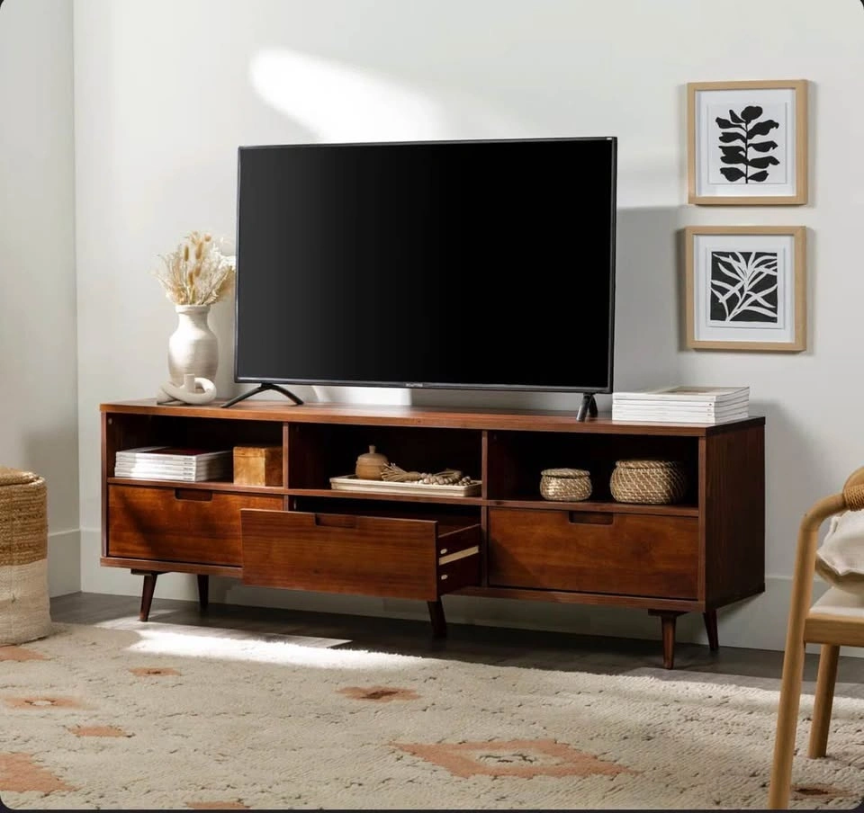 Mid-Century Solid Wood Media Stand - 70" Wide - BRAND NEW