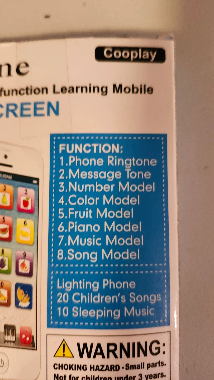 This Cooplay Y-Phone toy is designed for little ones aged 18 months and up. It plays various ringtones, message tones, and offers music and sound modes. It also features lighting effects and 20 children's songs plus 10 sleeping music tracks. It's a fun way for kids to explore sounds and lights!