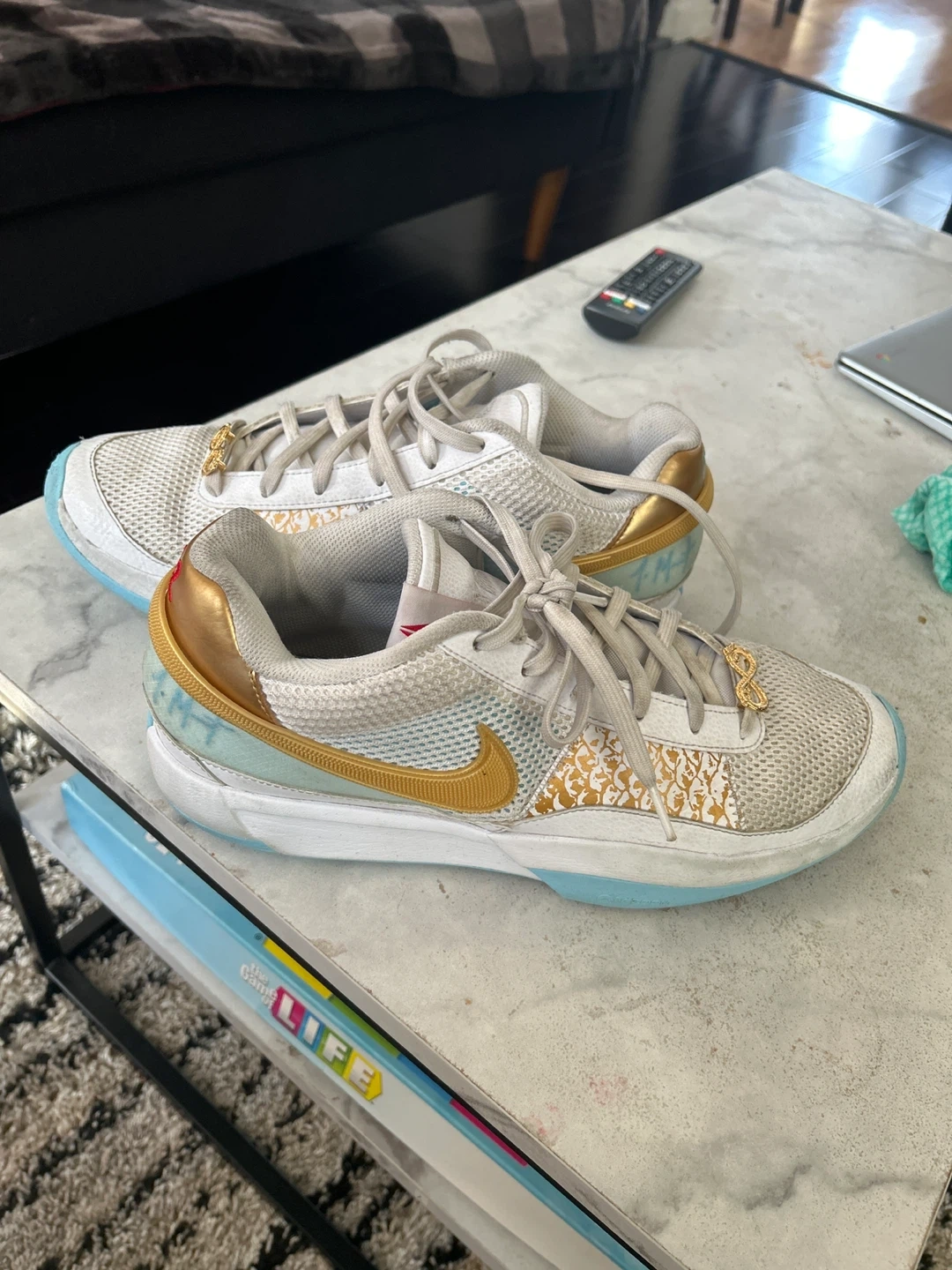 Wore them a couple times in game but overall still in really great condition purchased for about 200$ with tax about a year ago and they’ve js been sitting in my closet as I don’t really hoop anymore