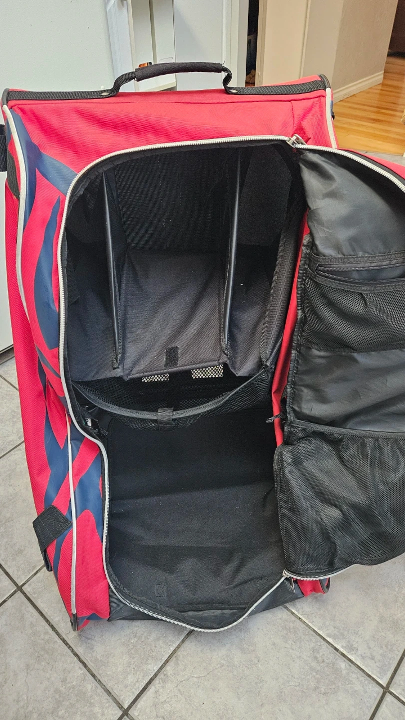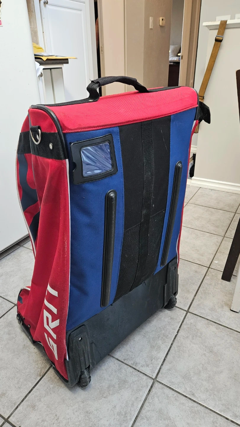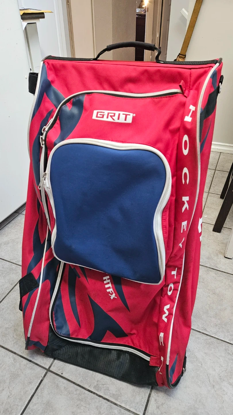 This GRIT hockey bag is designed for durability and convenience. It features multiple compartments and pockets for organizing gear. The wheels and pull handle make it easy to transport your equipment to and from the rink. Medium size.