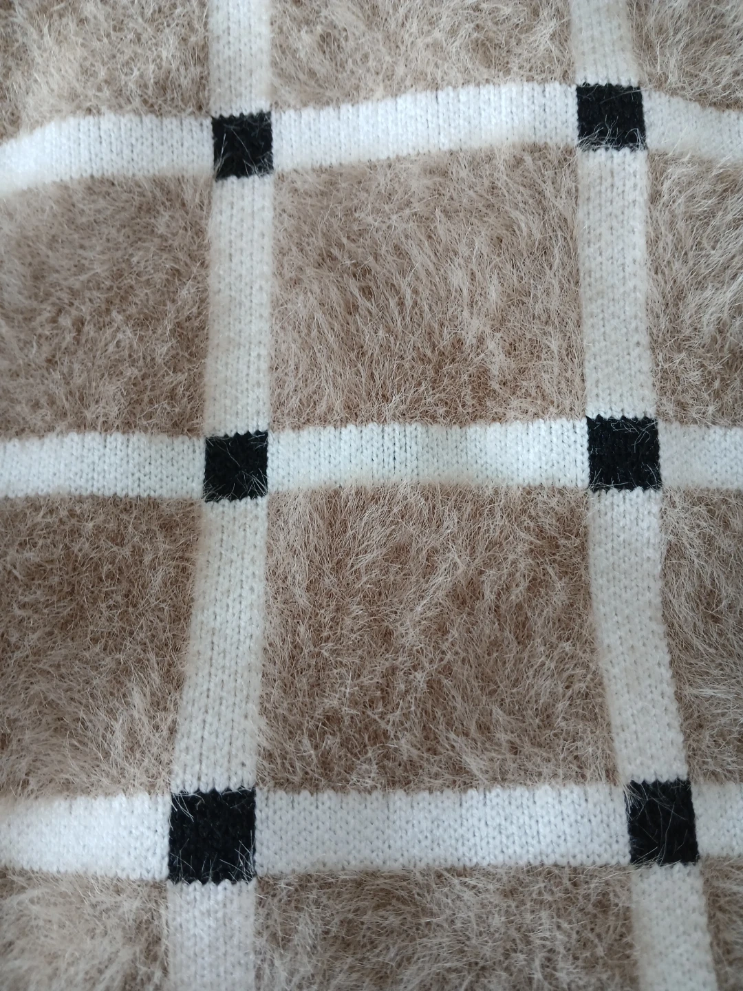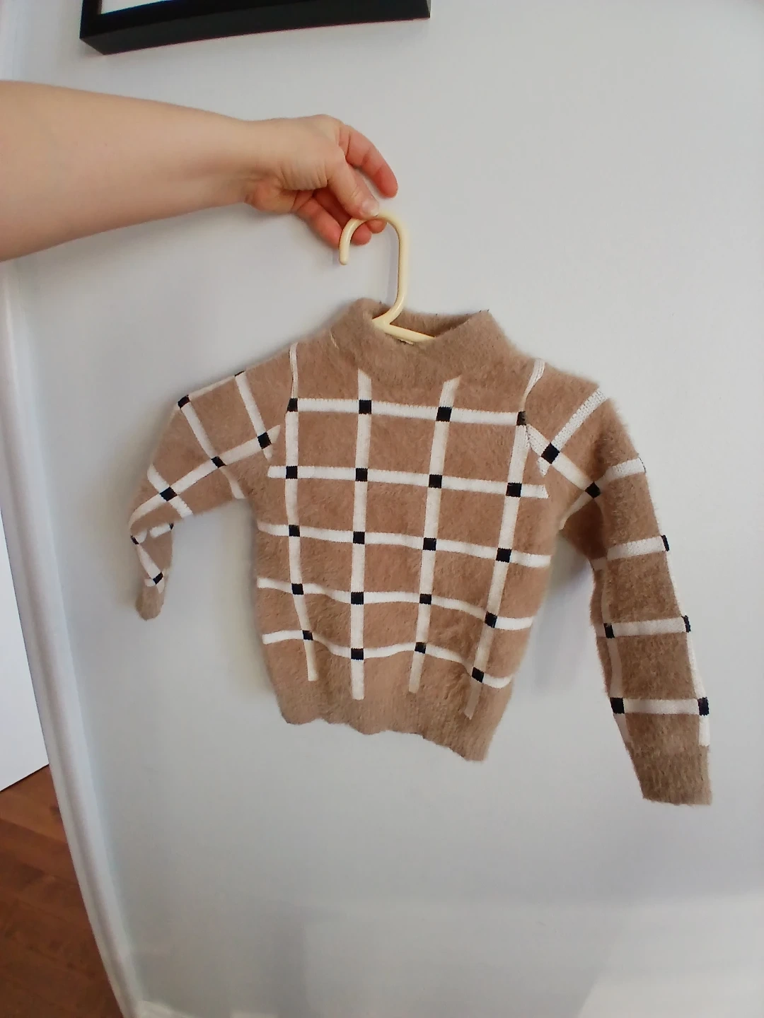 Toddler Tan Plaid Fuzzy Sweater