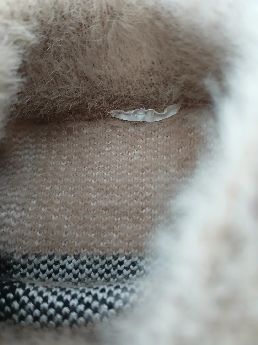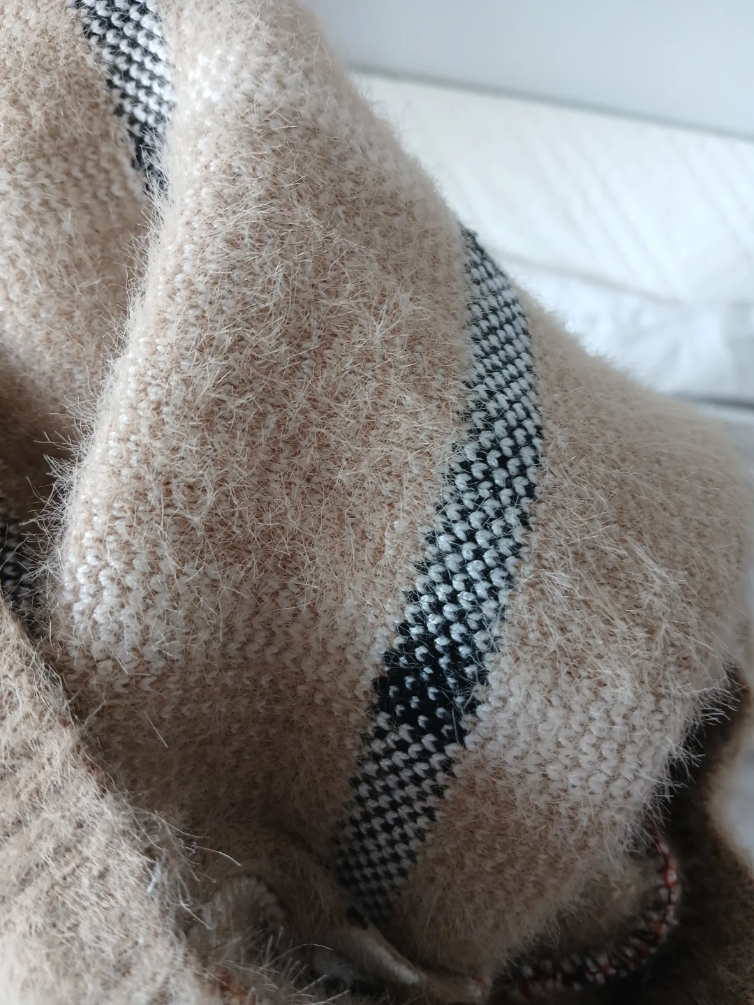 Made with soft, fuzzy material. Tag cut off - i believe it fits size 128m- 24m best but it is stretchy!