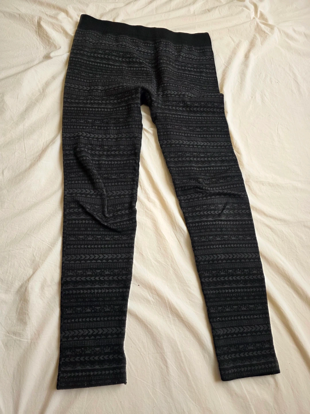 These Ardene leggings are black with a grey patterned design. They are a size Medium/ Large. .