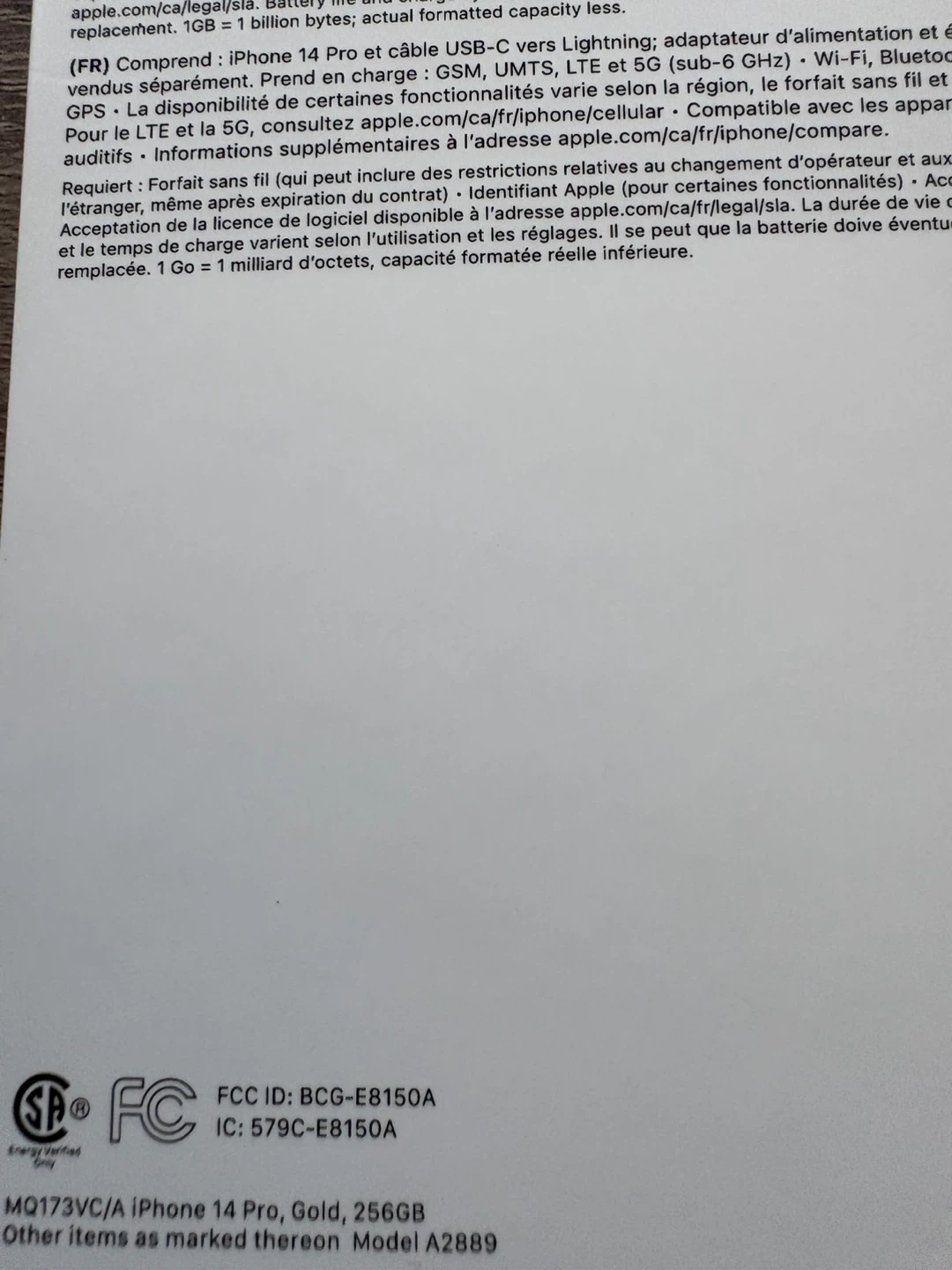 This is an Apple iPhone 14 Pro in Gold with 256GB of storage. It comes with a USB-C to Lightning cable. Condition: excellent,like new. Includes: Original box, unused charging cable.