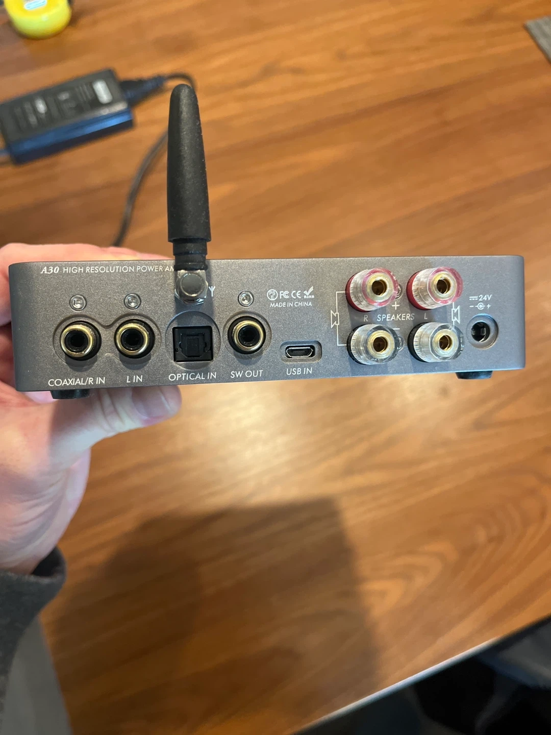 Pairs perfectly with an WiiM mini (also for sale) which I had hooked up with an optical cable. I used it as an alarm in the morning to wake up to high quality music.