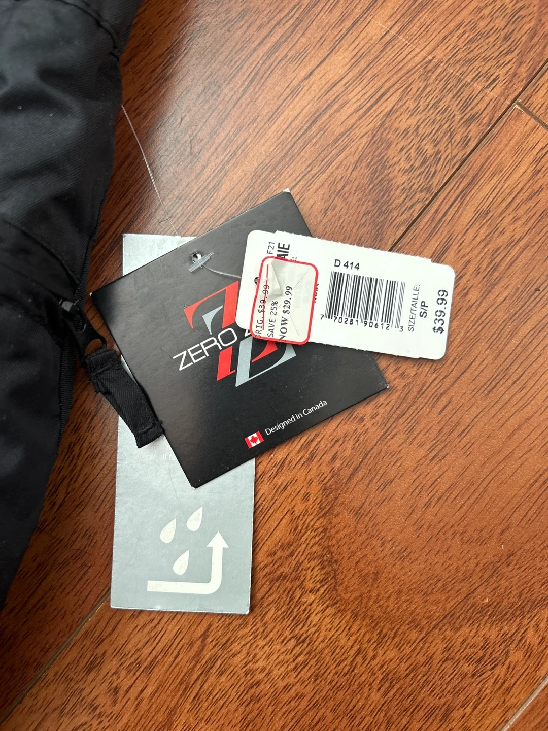 Brand new Zero Zone ski pants in black. Includes adjustable suspenders. Size S/P. Designed in Canada.