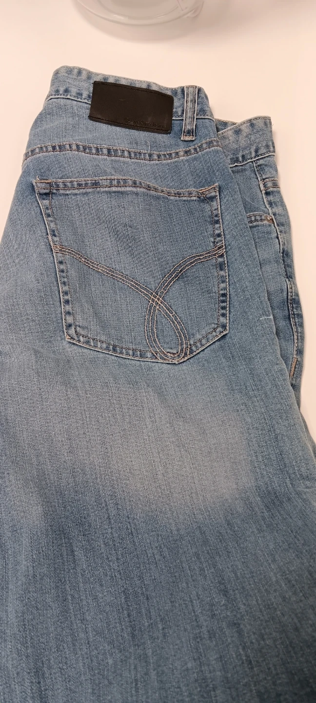 Classic blue denim jeans from Calvin Klein. Features a slim straight fit with a comfortable feel. A staple for any casual wardrobe. Size is W34 L34.