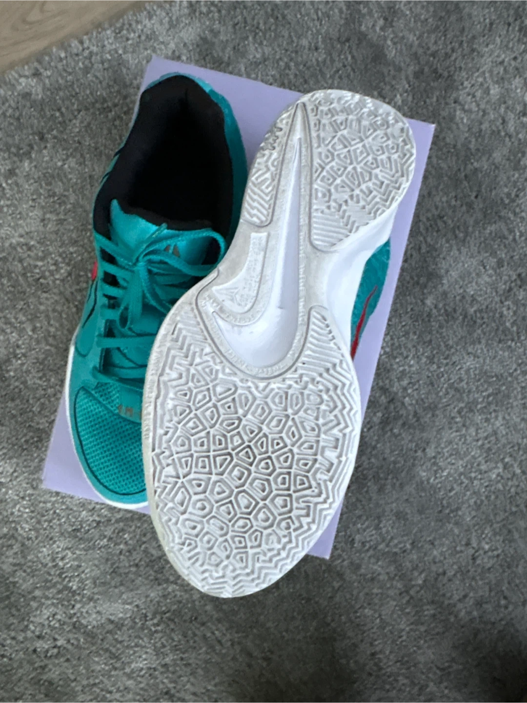Nike Ja 2 basketball shoes in a vibrant teal colourway, featuring the "12 AM" theme. These shoes have a breathable mesh toe box and a supportive rubber sole for excellent traction. They come with their original box.