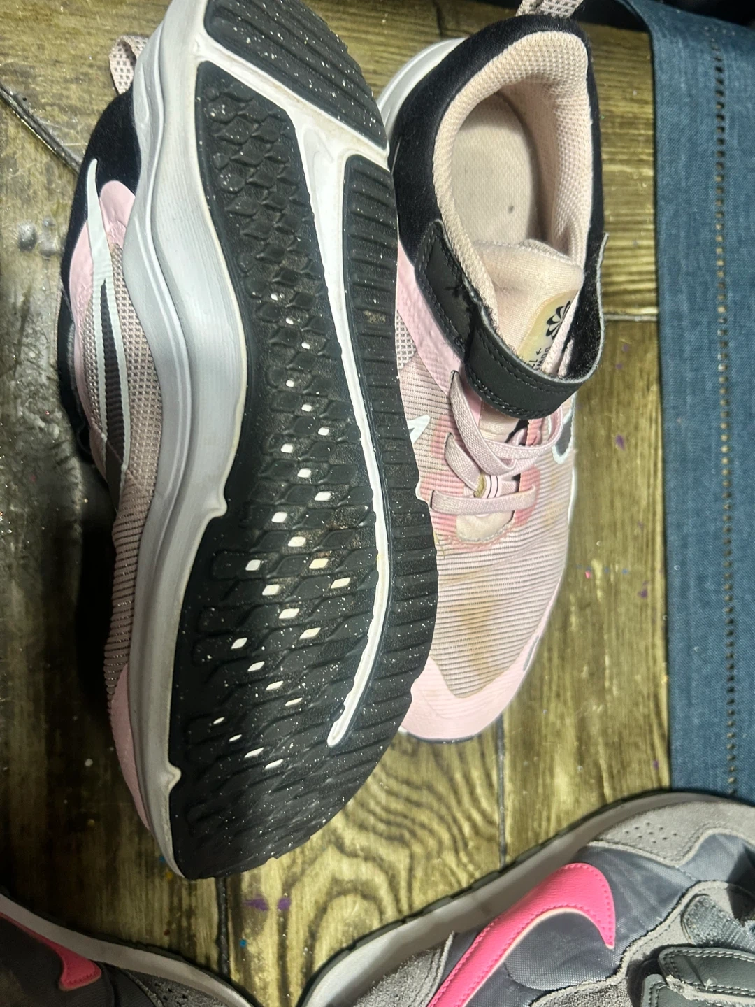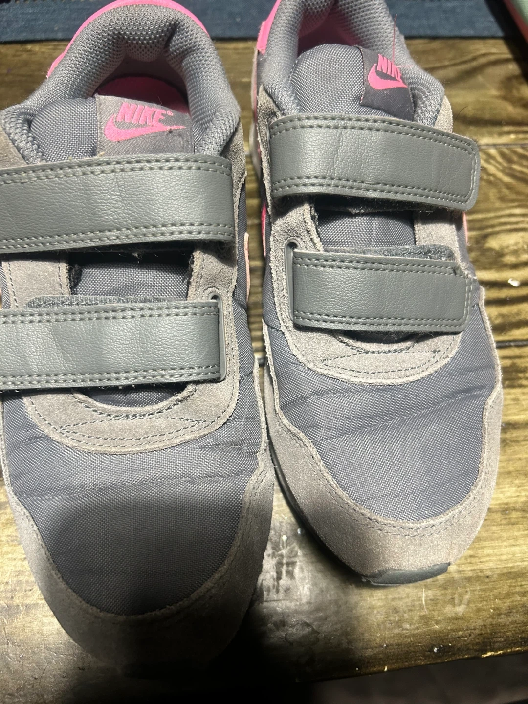 The second pair is pink with black accents and a mix of laces and Velcro.