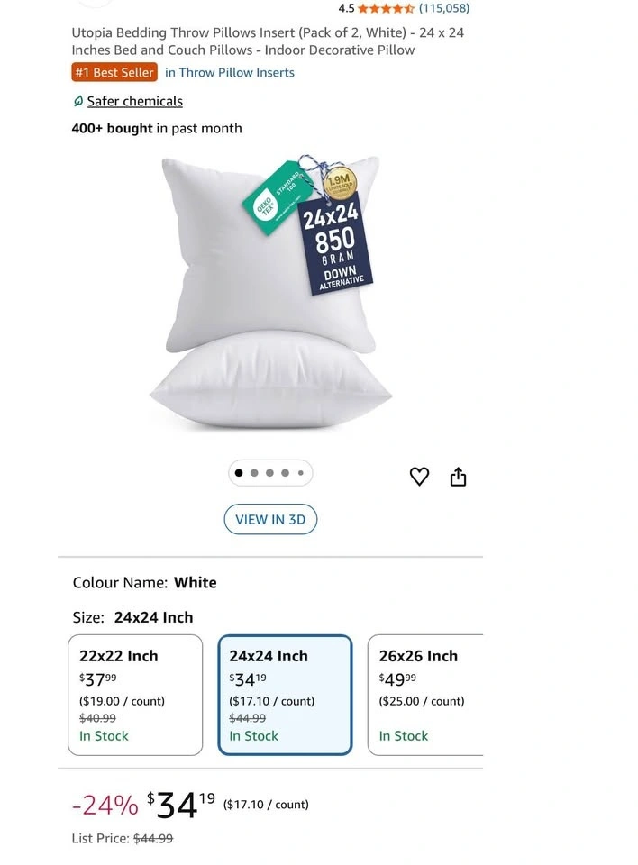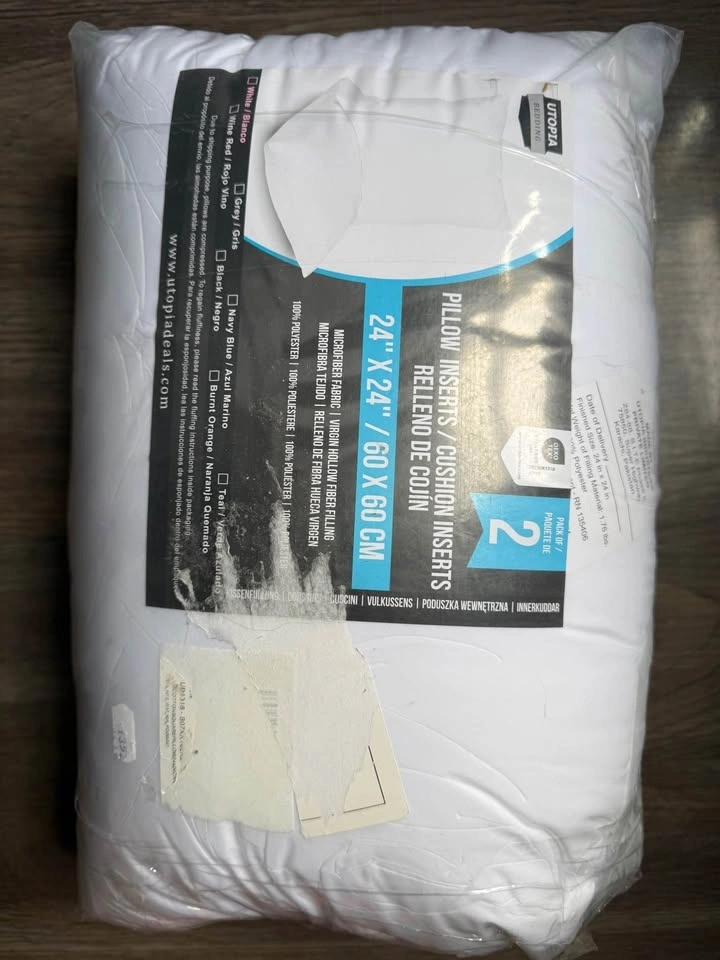 Indoor Decorative Pillow Inserts for Couch and Bedroom. Includes two 24x24 inch inserts and two 16x16 inch inserts, all white with polyester fill. Pick up near Yonge Eglinton Subway.