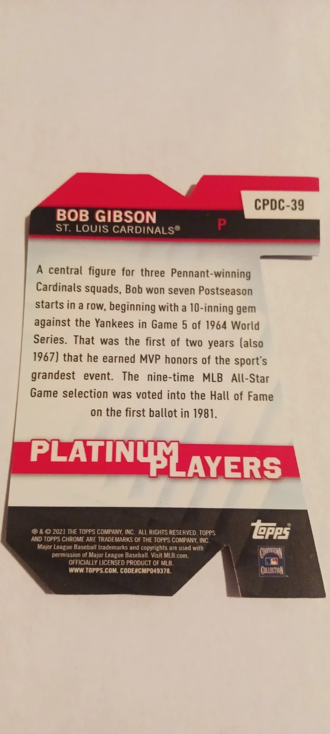 New !! Topps Chrome Platinum Players Bob Gibson Baseball Card