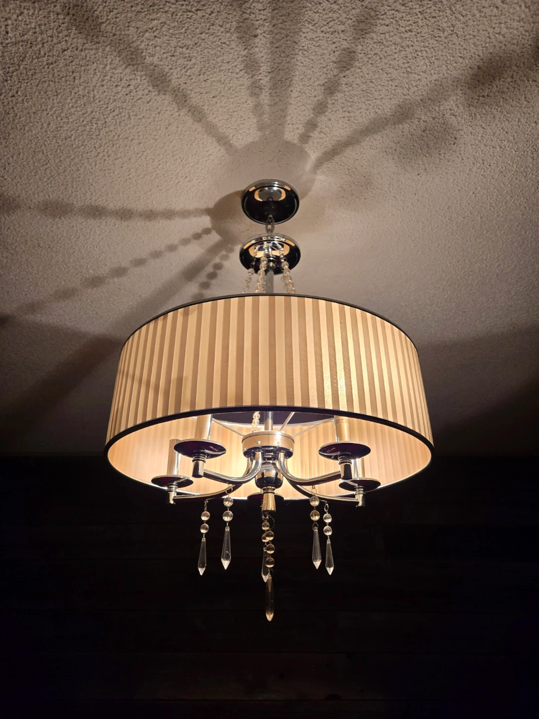 Chandelier with striped shade and crystal accents