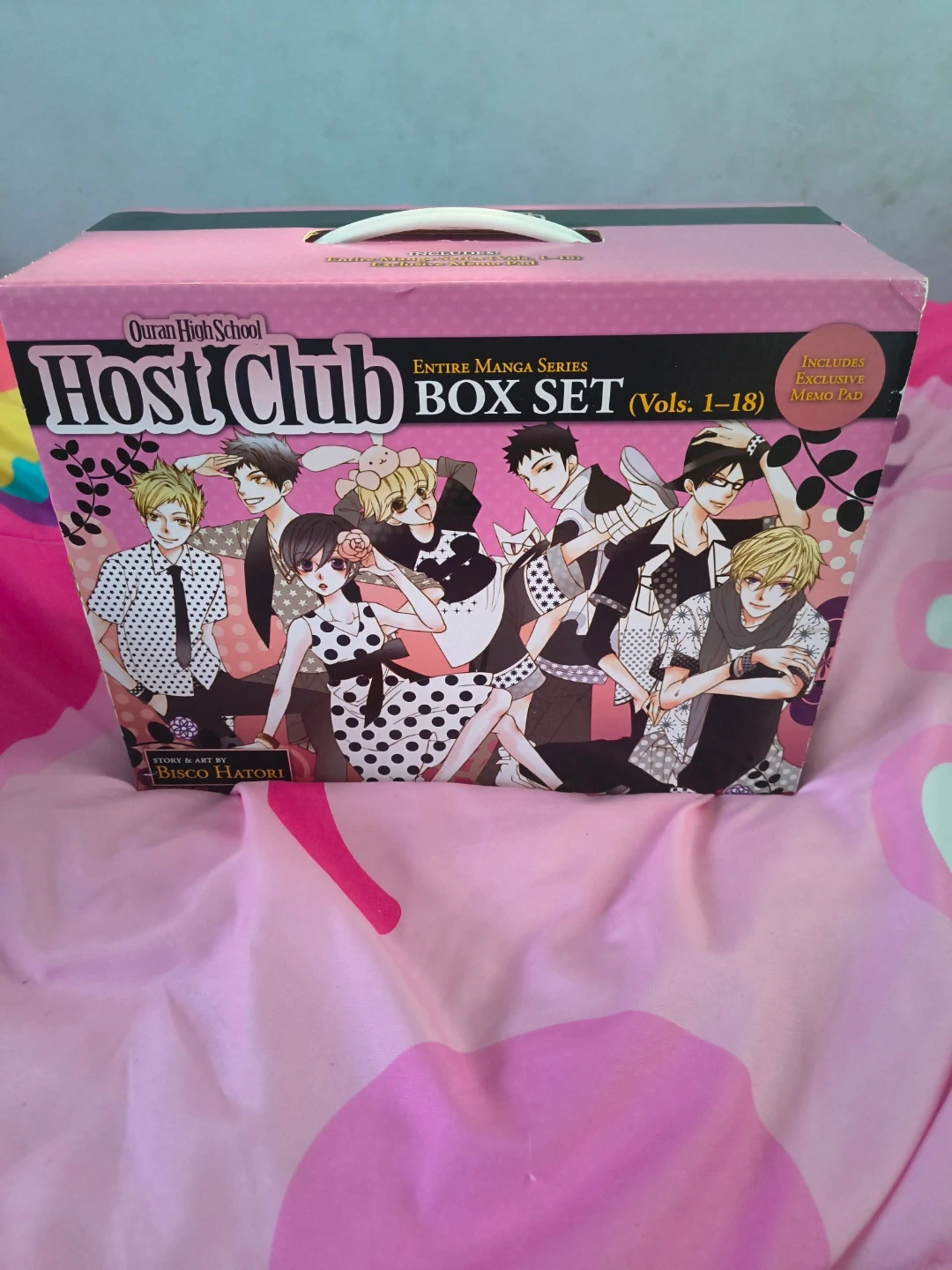 This is the complete Ouran High School Host Club manga series, Volumes 1 through 18. It does not include the exclusive memo pad. It's a great collection for any manga fan.