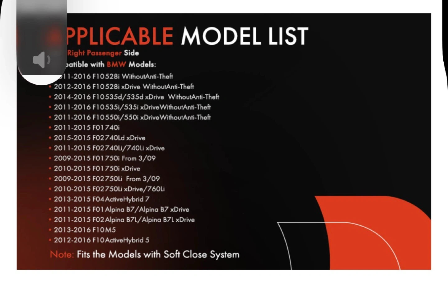 This is a rear right passenger door lock actuator assembly for BMW vehicles. It's made from plastic and metal components. This part fits BMW models with a soft-close system.