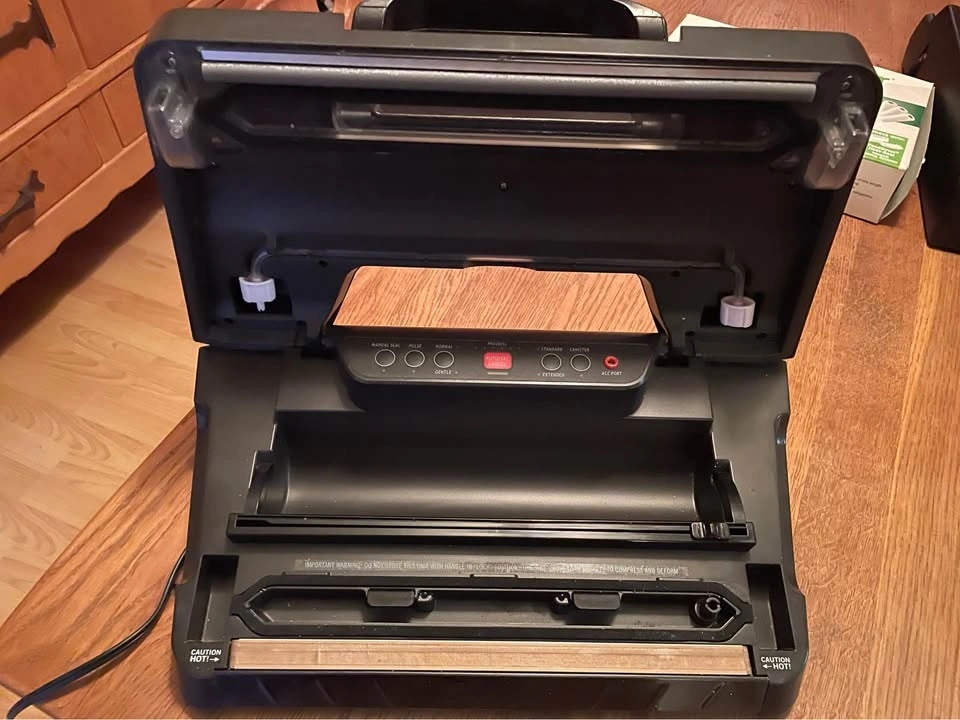 Preserve your meat easily and effectively. This 12" Pro Series Vacuum Sealer seals up to 100 bags per hour with virtually no wait between bags. 24 inHg of pressure keeps your food fresher for longer and helps prevent freezer burn. The compact 12" sealing bar delivers an airtight seal. Crush-resistant, replaceable foam seal gaskets create an airtight vacuum chamber for many years to come. Choose from Manual Seal, Pulse, Gentle, Extended, Canister, and Auto/Vac Cancel modes. Features waterproof, easy-touch control-panel buttons. The clear acrylic vacuum chamber with LED lighting allows you to check on progression. It has a three-position handle (lock, store, and open) for worry-free sealing. Bag-positioning guides keep bags in constant alignment. Includes built-in bag storage, a bag cutter, and cord wrap for convenience. Nonslip rubber feet. Comes with four Liquid Blockers to prevent liquids from entering the sealing area, as well as a bag roll. Dimensions: 4.75"H x 17.25"W x 9.75"D. Weight: 6 lb. Pick up in Port Moody.