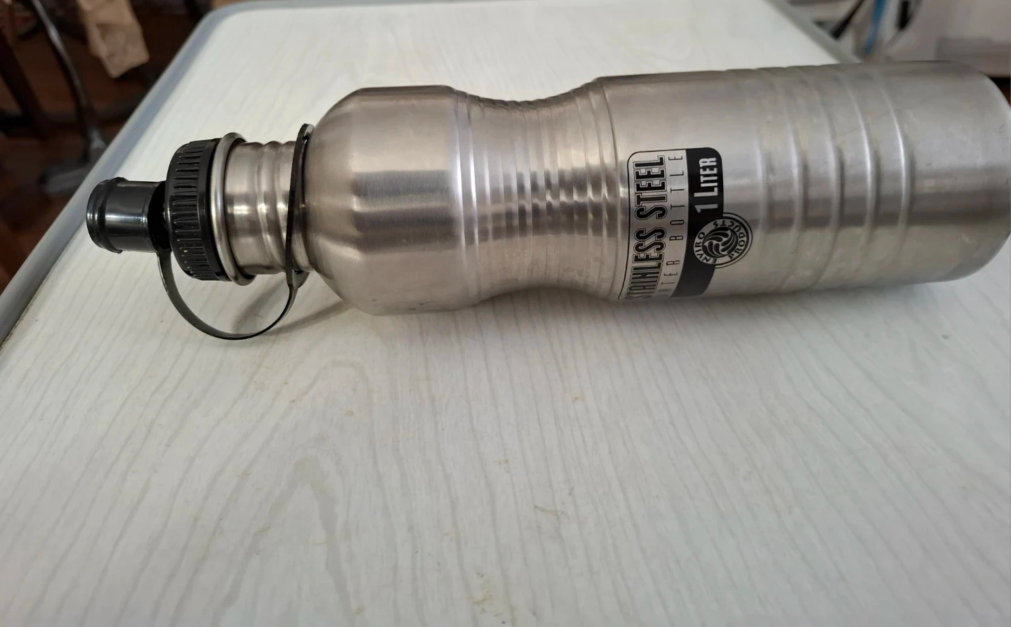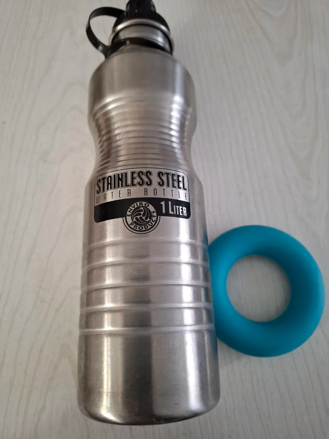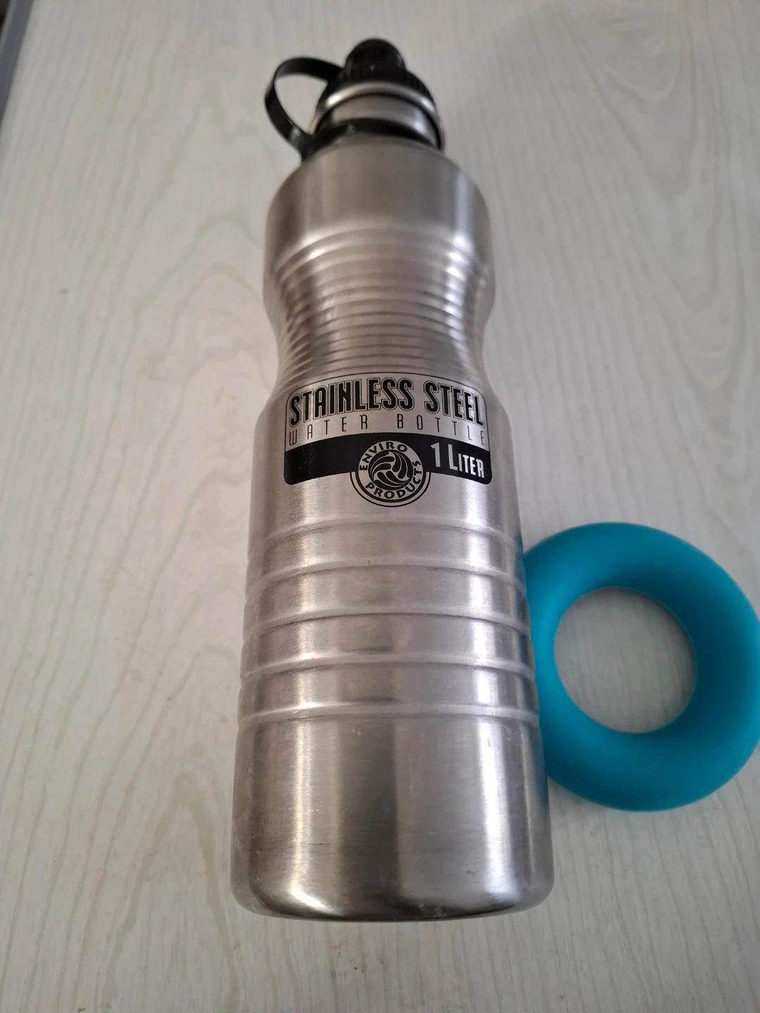 Enviro Products stainless steel water bottle. It's a 1-liter capacity. This durable bottle is great for staying hydrated on the go!