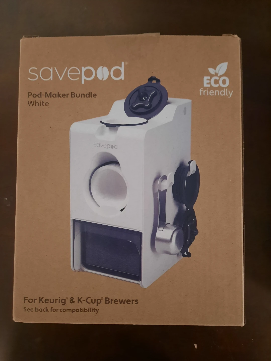 This Savepod bundle is designed to make your own coffee pods for Keurig and K-Cup brewers. It's eco-friendly and comes in white. Instructions on how it works are printed on the box.