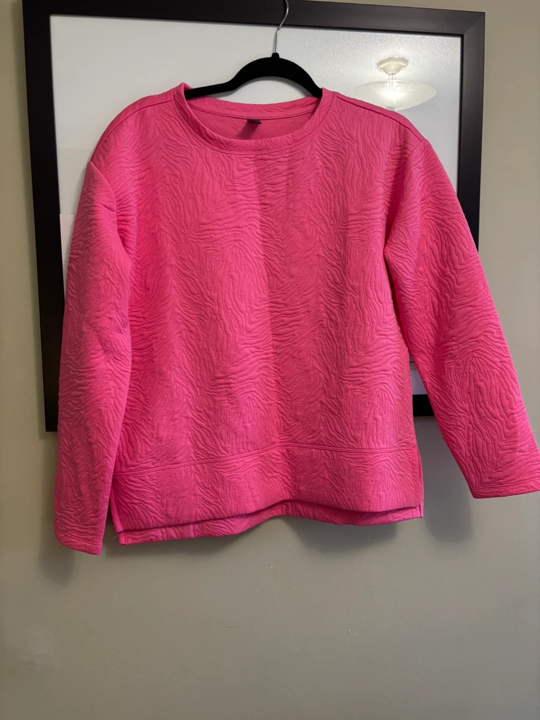 Bright Pink Textured Crewneck Sweatshirt