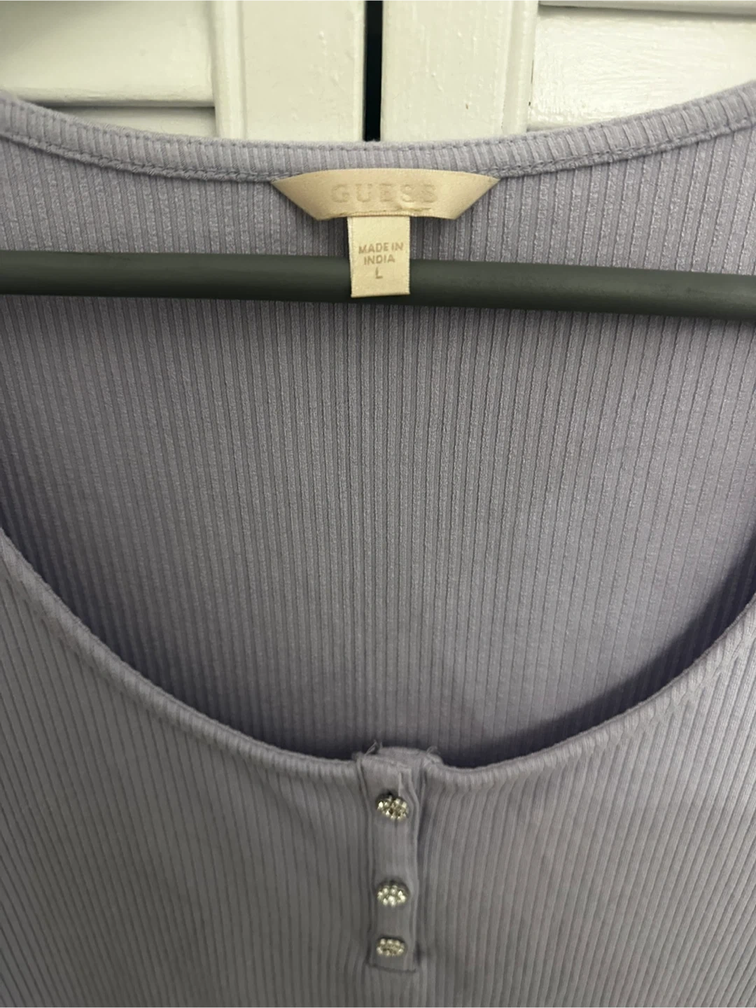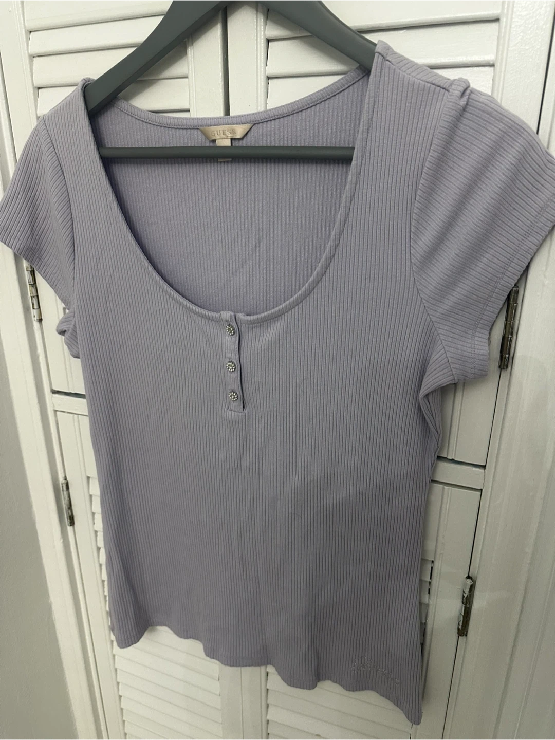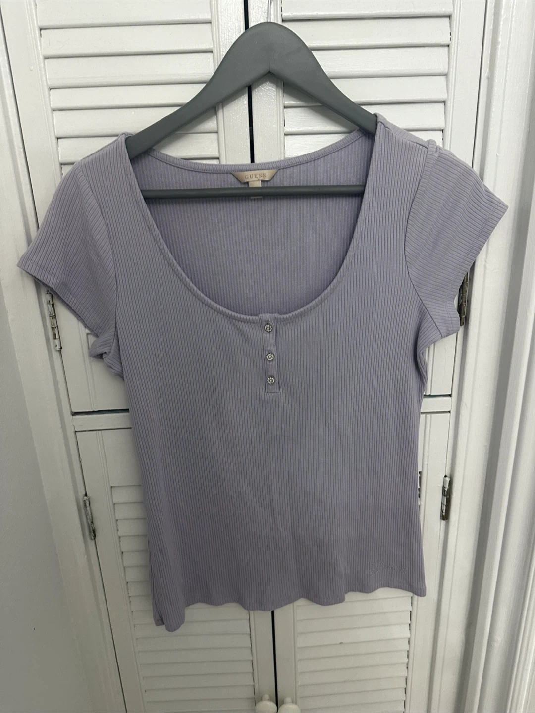 Guess Ribbed Button Henley Shirt - Lavender - Size L