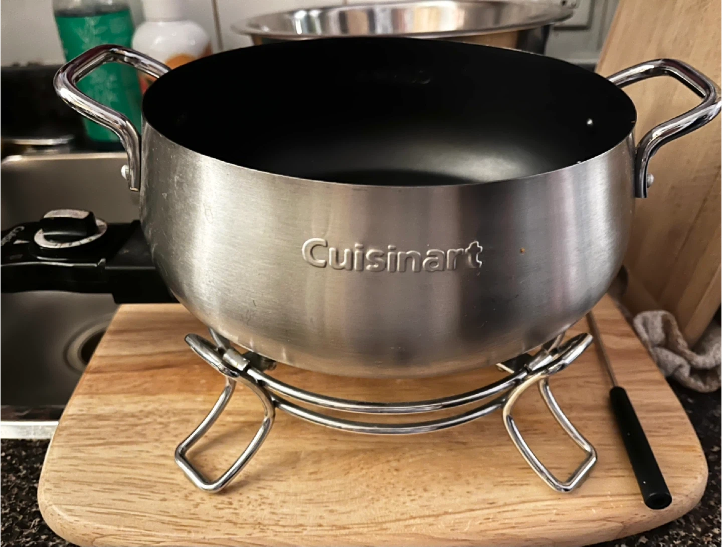 🤍This Cuisinart electric fondue pot has a brushed stainless steel exterior and a non-stick interior.