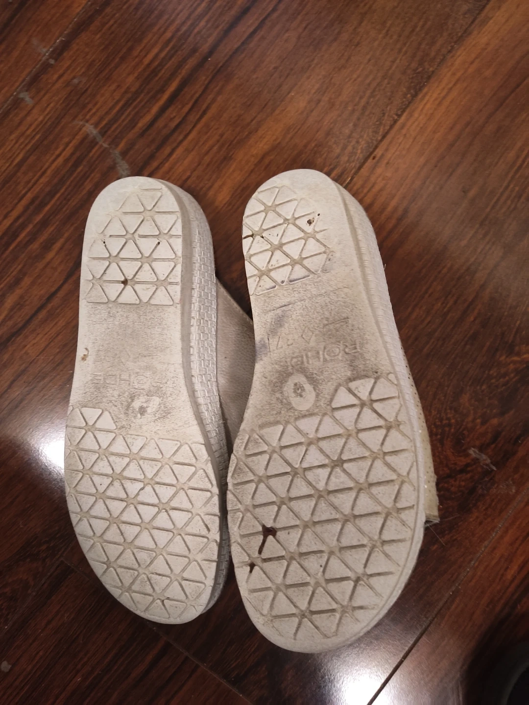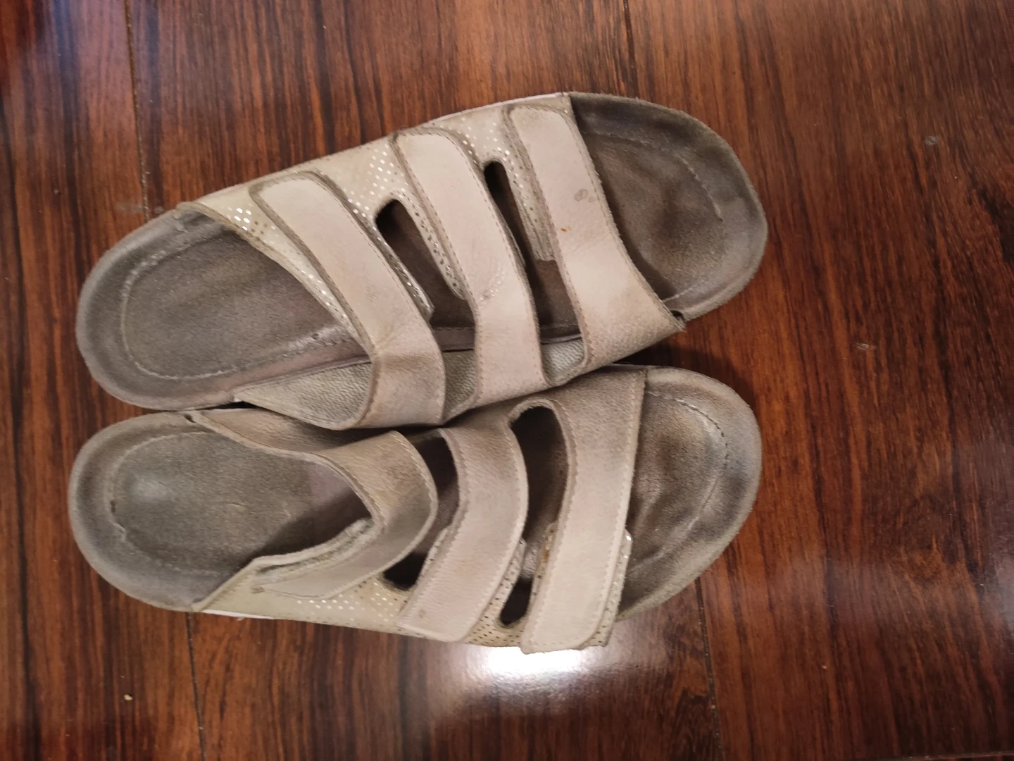 White sandals with adjustable velcro straps. Good for warm weather. The brand is ROLENDA and the size is 37.