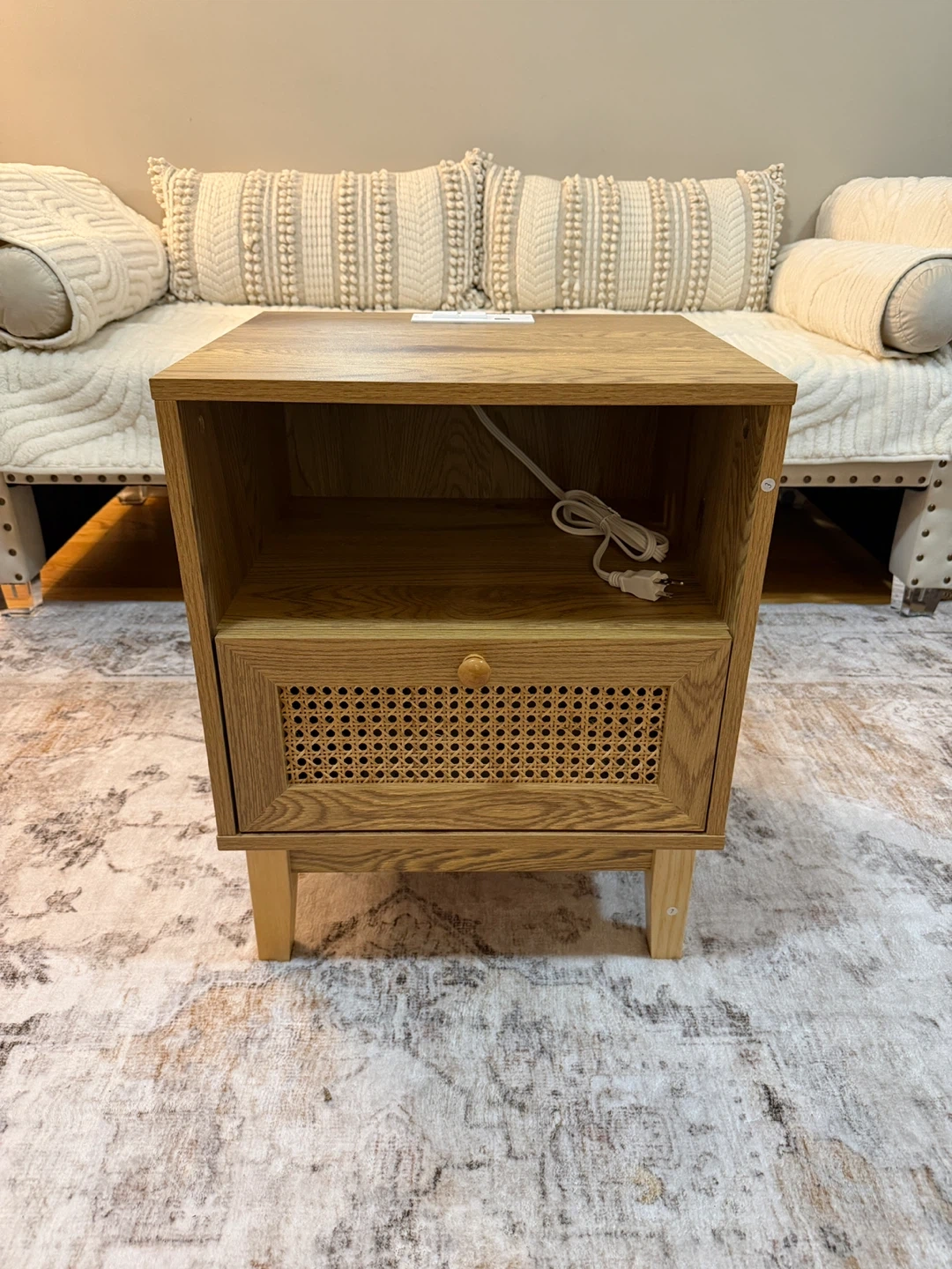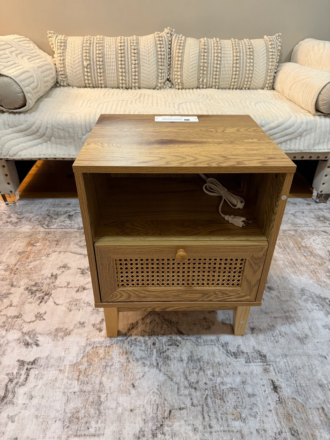 Rattan Nightstand with Drawer/USB Outlet