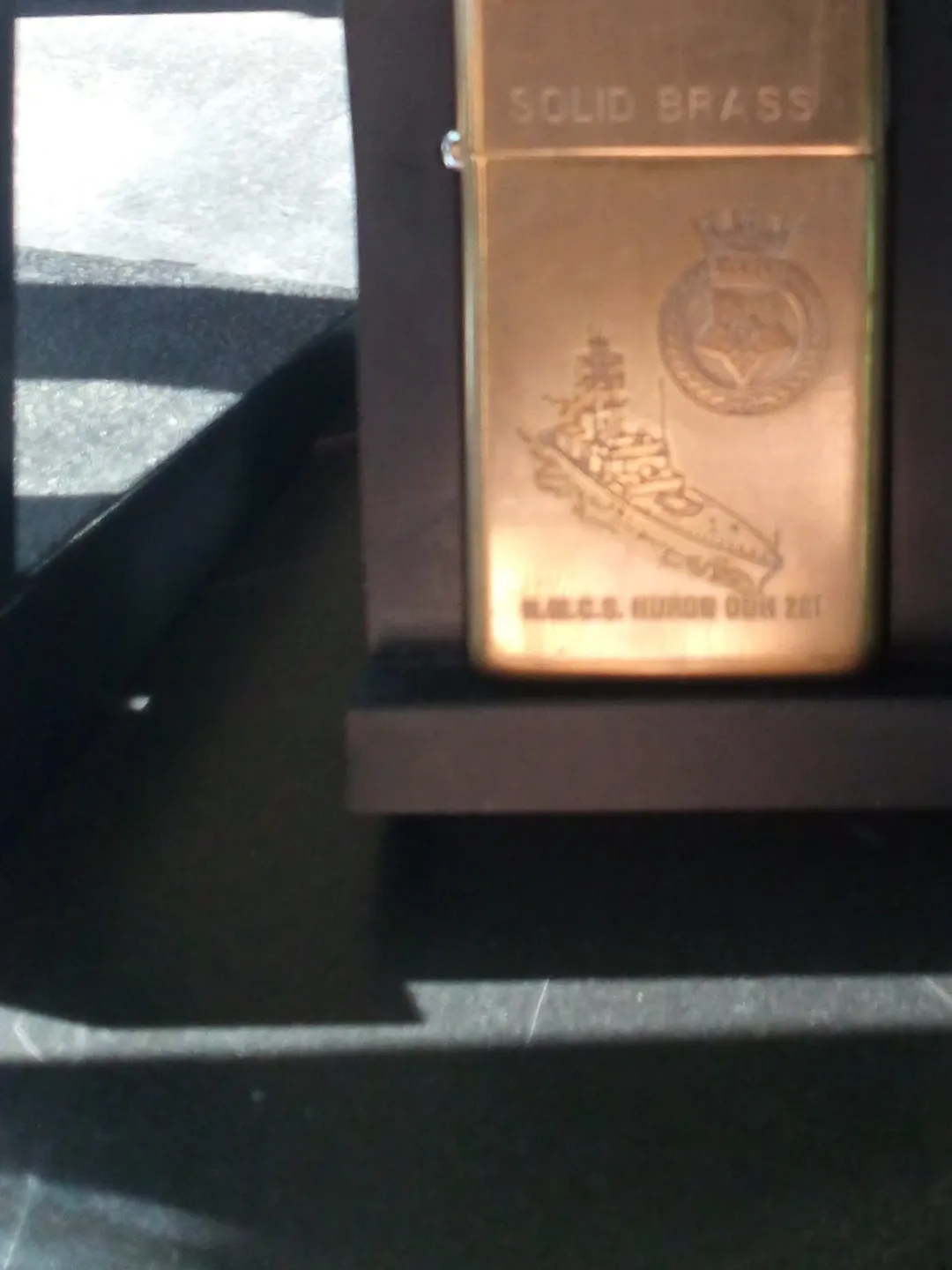 This solid brass lighter features an engraved image of the HMCS Huron DD 221. It's a durable and classic accessory. A great item for collectors or anyone who appreciates naval history!