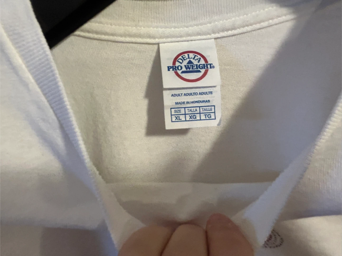 Never worn White Delta Pro Weight adult t-shirt with a rhinestone graphic that says "New Orleans". XL size. Made in Honduras.