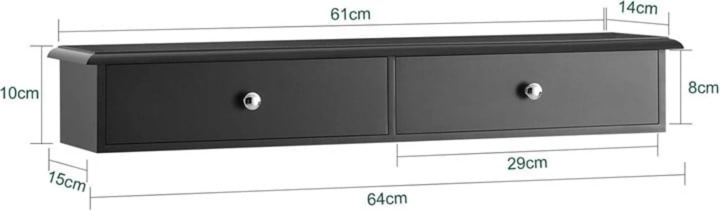 Black Wall Mounted Shelf with Two Drawers