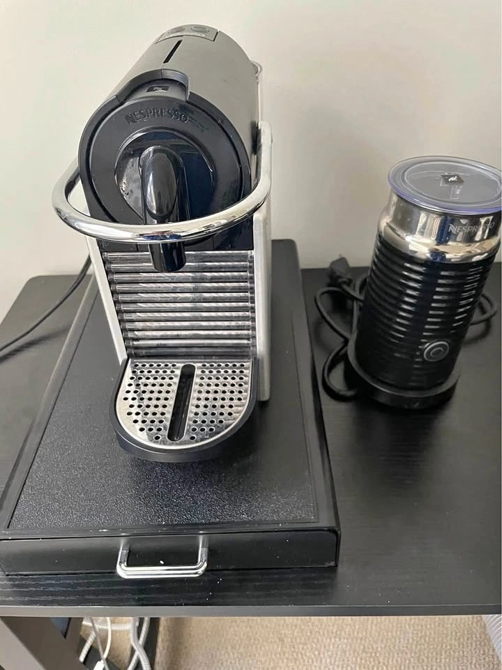 I've used this Nespresso Pixie for a little over a year. It comes with the milk frother and a coffee pod dock. Pickup is near Ravine Park in Abbotsford.