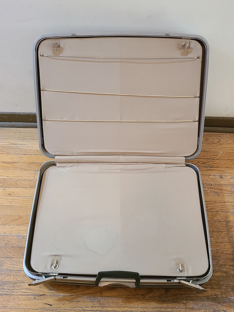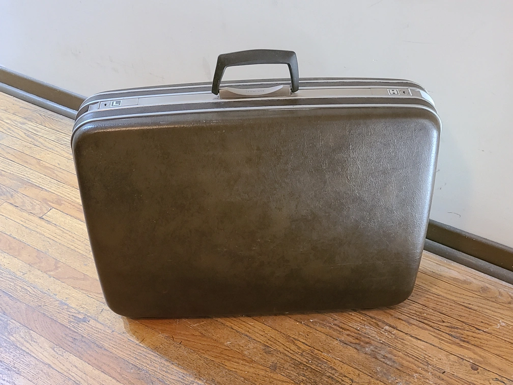 A rare find! Great used condition brown hard case Samsonite luggage. Solidly built. Has 2 separate compartments on either side for organizing clothing/travel essentials. Has L & H monogram on the top.