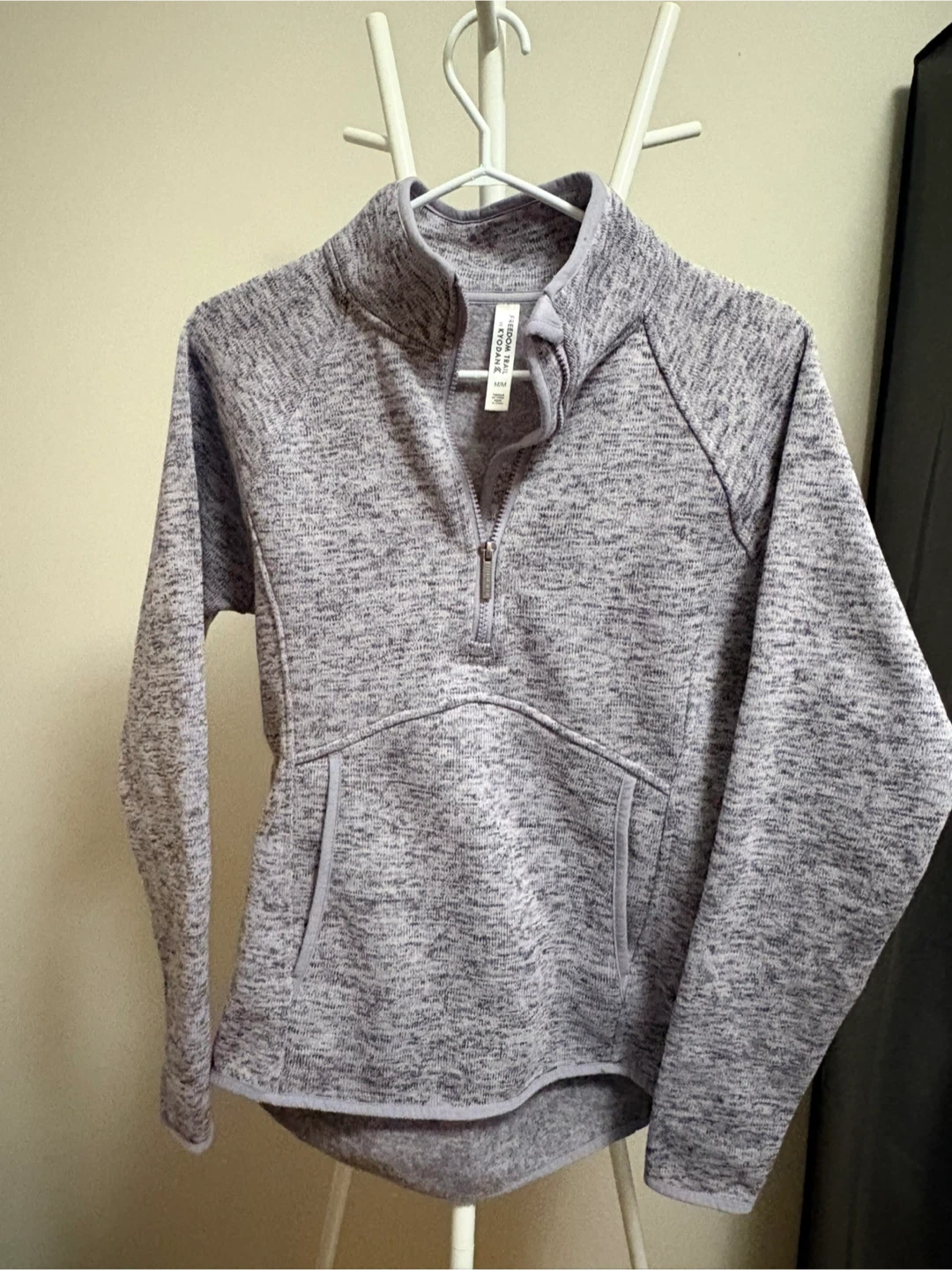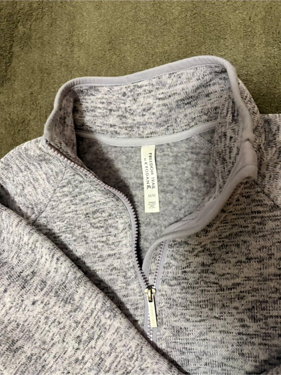 This heathered grey 1/4 zip pullover sweater is from Freedom Trail by Hudson's Bay.