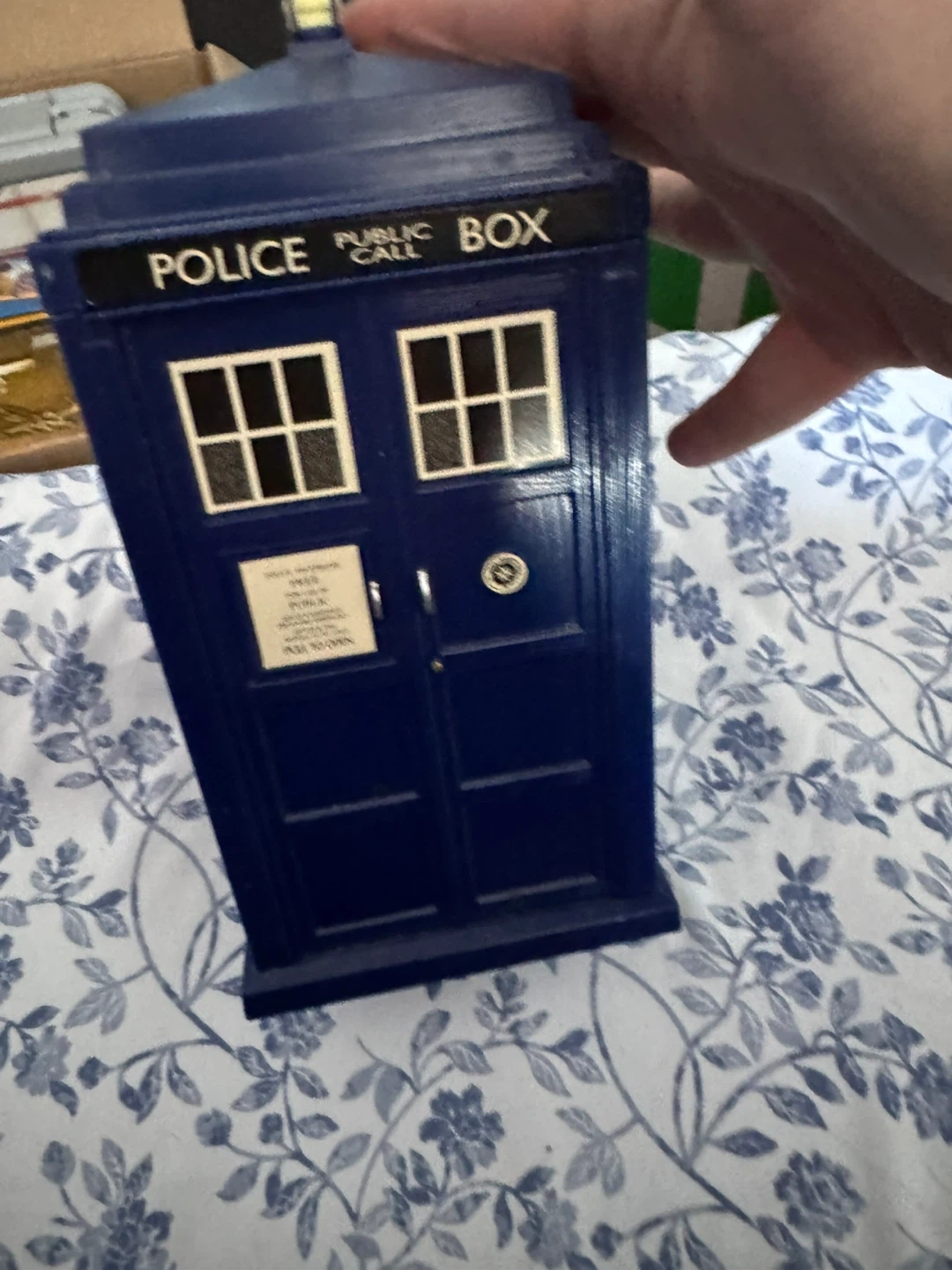 This is a Dr. Who themed board game featuring a Tardis police box. It includes game pieces and instructions. It's a fun game for fans of the show!