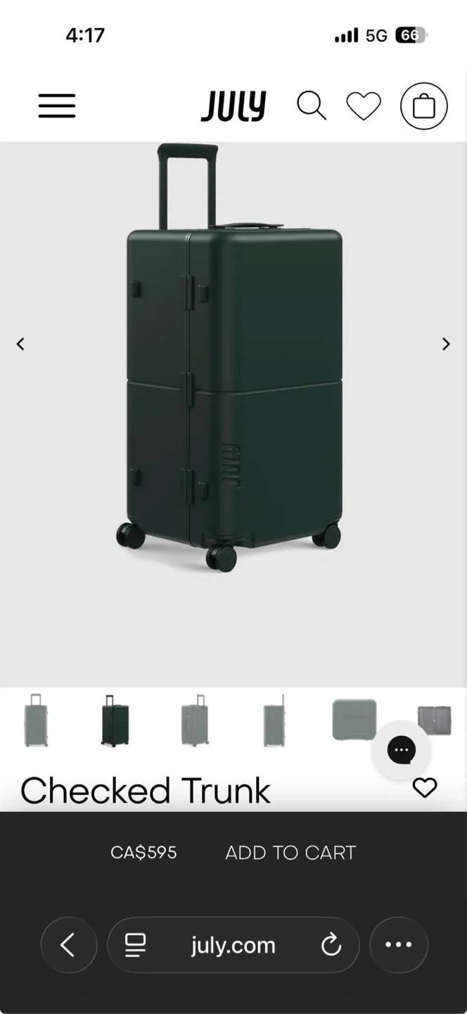 This is a July Checked Trunk luggage. It's designed for travel and features a durable build. Great for longer trips and carrying all your essentials!