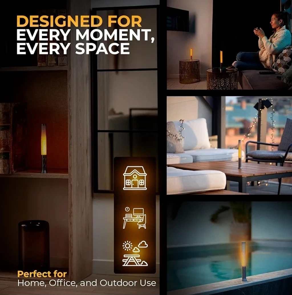 A stunning, modern, cordless lamp that adds warmth, luxury, and ambiance to ANY space. Perfect for bedrooms, nightstands, dining tables, patios, offices, and cozy setups. Ready to impress! ✨