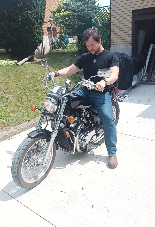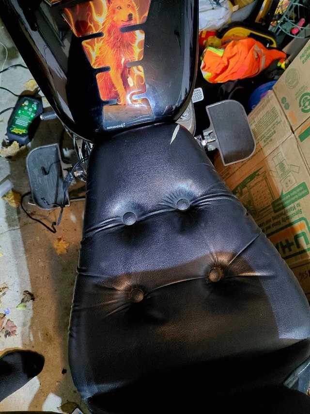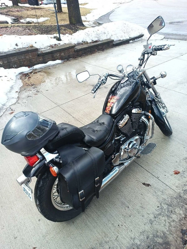 Selling my 2001 Suzuki Intruder VS800 Motorcycle because I'm moving. Otherwise I'd be keeping her. I'm 6' 1" for reference on photo #3. Features/Included: -800cc's -Electric Start -Choke -Petcock (for reserve gas situations) -Battery Charging Cable Under Seat -Handlebars have heated pads for fall/winter riding -LED Headlight & Highbeam -"Car Horn" -Gas Tank Protector -Talisman Saddle Bags -Replacement Spark Plugs I Never Got To Use -Original Bulb & Horn -Chrome Polish, & Bike Cleaner With 2-3 Microfiber Cloth's. Dead empty to full tank: $20 at 91 Octane. Full tank lasts 140-160km. See Photos #4-8 for imperfections/damage. Asking $2,500. Open to negotiation. Pickup only.