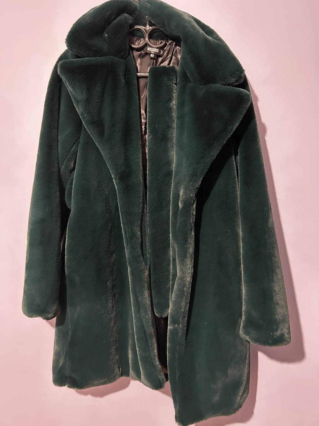✨ Stunning Emerald Green Faux Fur Statement Coat ✨