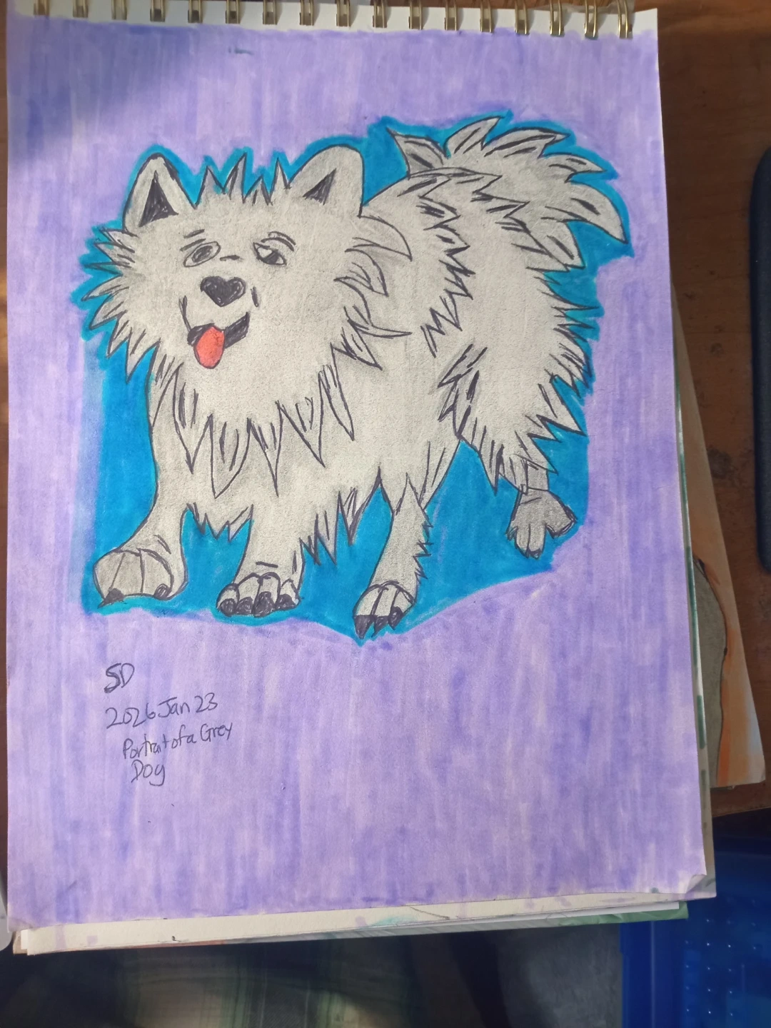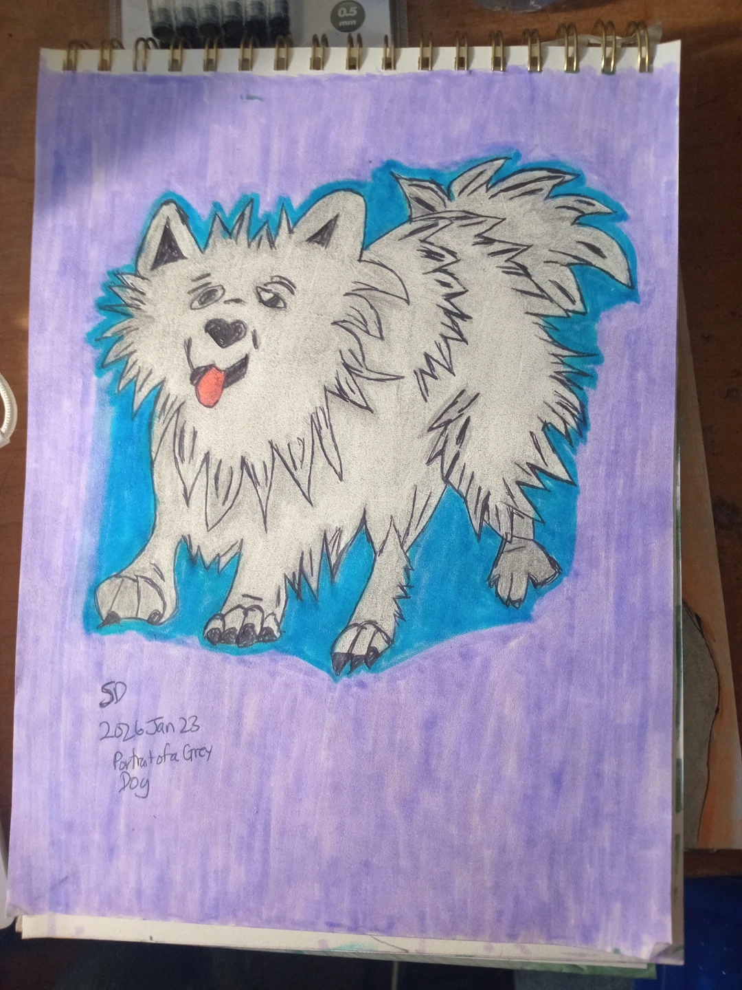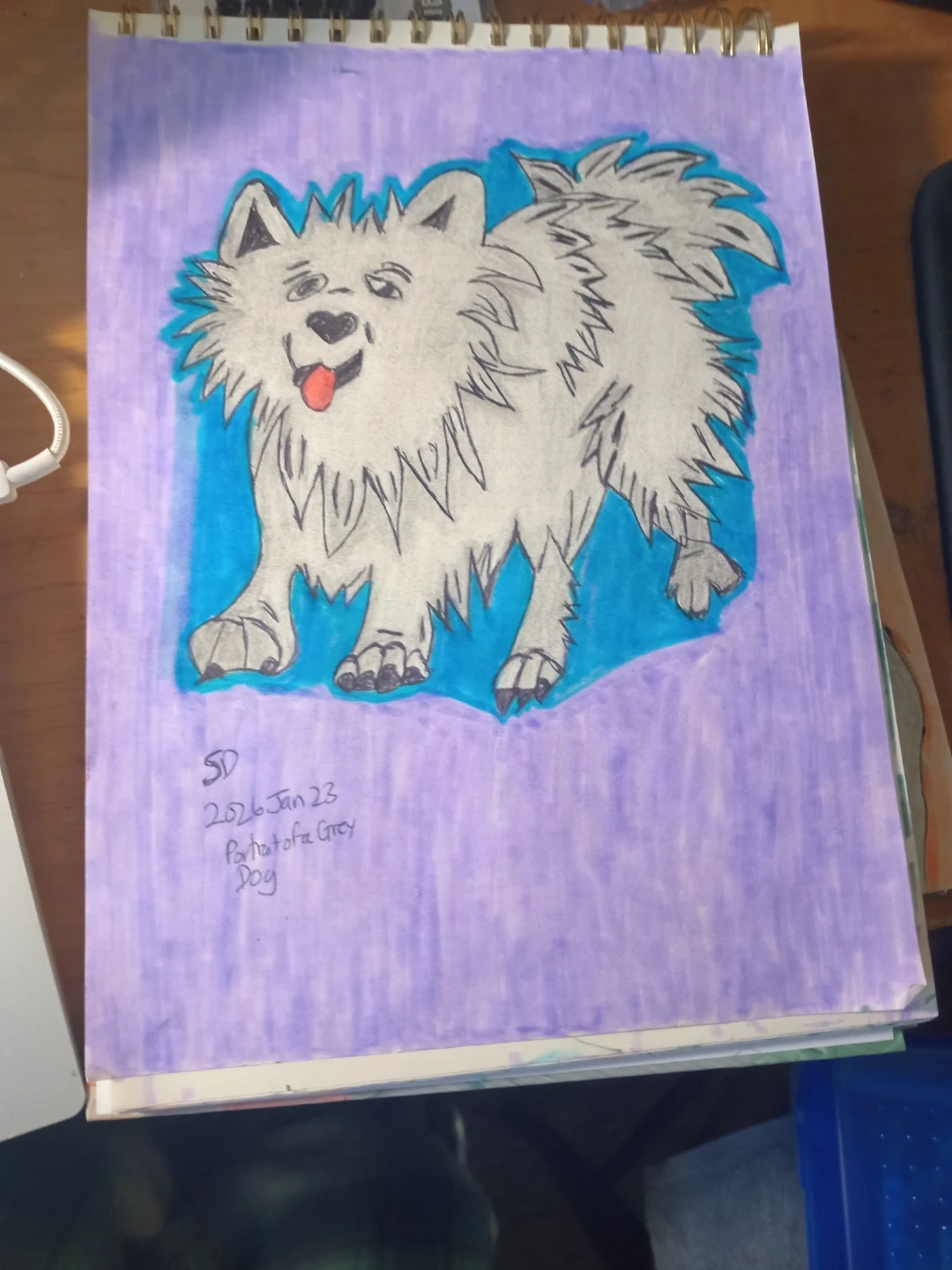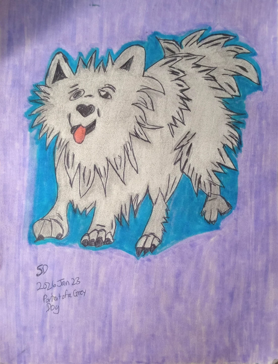 GREY PUPPY DOG PORTRAIT CARTOON BY CUSTOM ARTIST SHERWIN