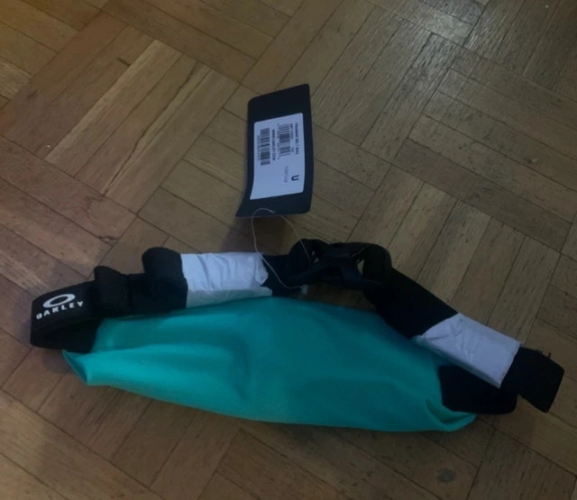 This brand new Oakley belt bag features a vibrant turquoise color, perfect for adding a pop of color to any outfit. It comes with its original tags and is ready for your adventures. If you're reading this, it's still available!