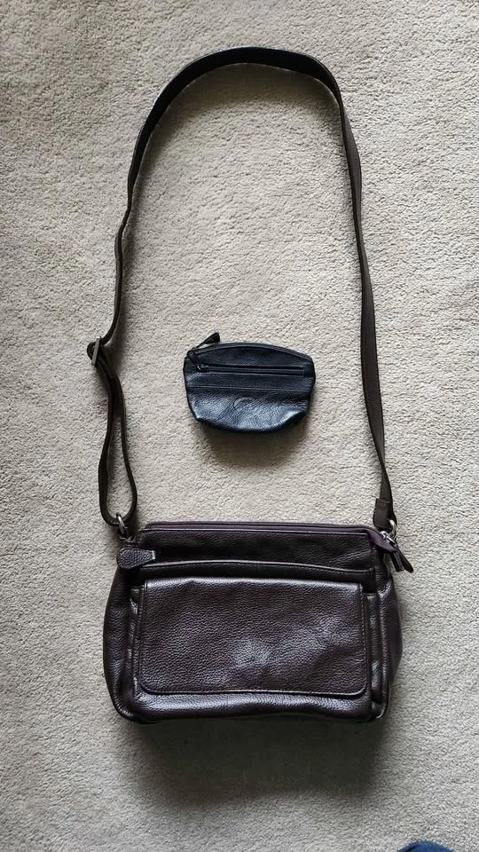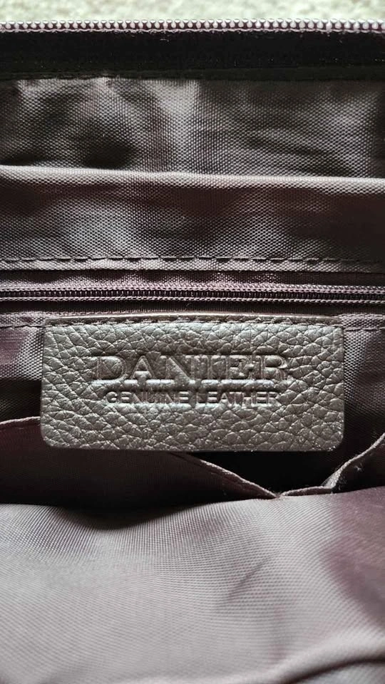 Rarely used Danier brown leather handbag. Features 4 compartments, with 2 pockets and one zippered pocket in the main compartment. Comes with a black coin purse.