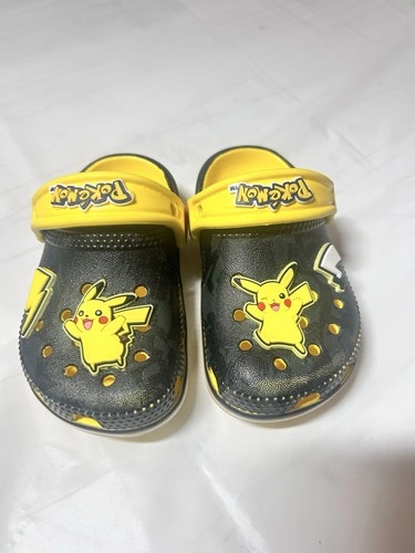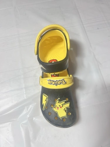 Limited edition slip-on clogs featuring a round toe, flat heel, and rubber outsole. Perfect for casual occasions in the summer and spring. These clogs offer moderate cushioning and are ideal for both kids and adults. The black color with Pikachu logo accents make them a fun and stylish choice for any Pokémon fan. Features a low top shoe shaft style and rubber upper and insole material for comfort and durability.
