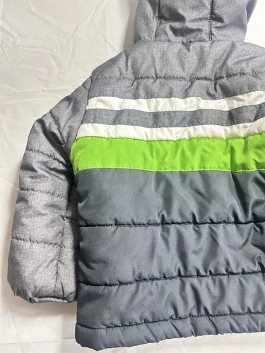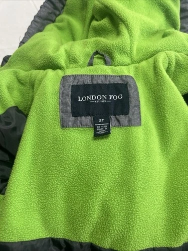 This London Fog winter jacket for boys in size 2T is a solid gray color with a zip closure and long sleeves, perfect for casual occasions. The jacket features a hood and is made of 100% polyester with polyester insulation, making it machine washable for easy care. With a puffer style design, this jacket is ideal for walking in the winter season while keeping your little one warm and stylish.