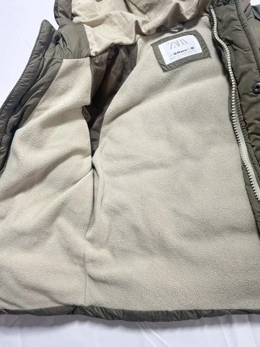 This Zara waterproof down jacket for children in size 18-24 months is a practical and stylish choice for the winter season. Made with 100% polyester outer shell material and polyester insulation, this long-sleeve puffer jacket features a zip closure and is machine washable for easy care. The beige color and casual style make it versatile for everyday wear, while the winter season performance ensures comfort during outdoor activities like walking. Perfect for both boys and girls, this Zara jacket combines quality and fashion in one warm and cozy garment.