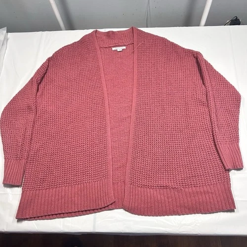 Stylish and versatile American Eagle Outfitters waffle knit cardigan in a pink/mauve color. Made from soft cotton, this long-sleeve sweater is perfect for casual occasions in fall and spring. Machine washable for easy care.