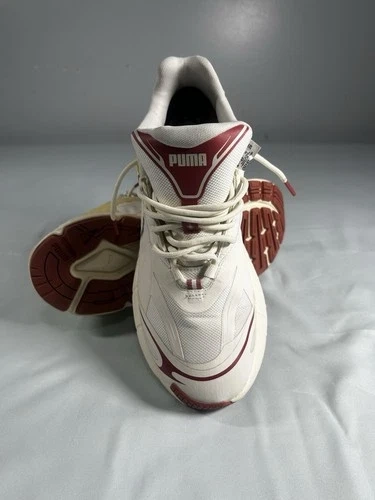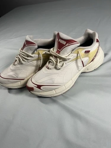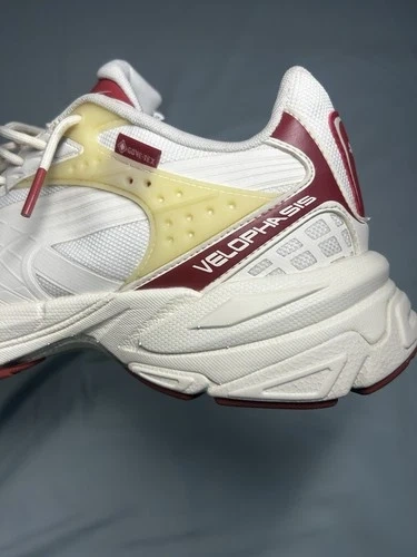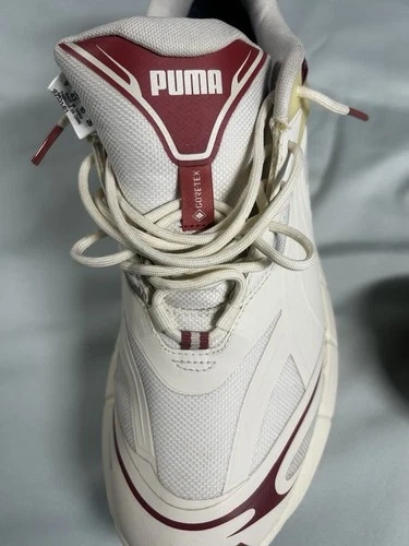 The PUMA Velophasis GORE-TEX 'GORP' Sneaker in Frosted Ivory and Red is a stylish and versatile athletic shoe designed for men. Made with a textile upper material, this sneaker features a unique design with a frosted ivory color and red accents. The PUMA Velophasis model offers both comfort and performance, making it an ideal choice for sports or casual wear. The size US 10 ensures a perfect fit for a range of activities.