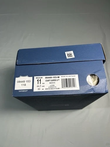 K-Swiss Men's Casper Court Shoes Size 11 White Leather